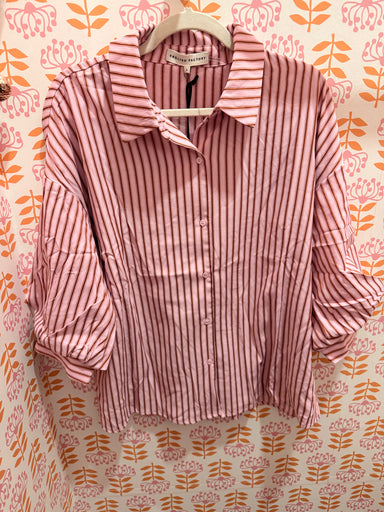 Elevate your everyday style with this charming striped balloon sleeve shirt featuring crisp tan and white vertical stripes. The voluminous balloon ...