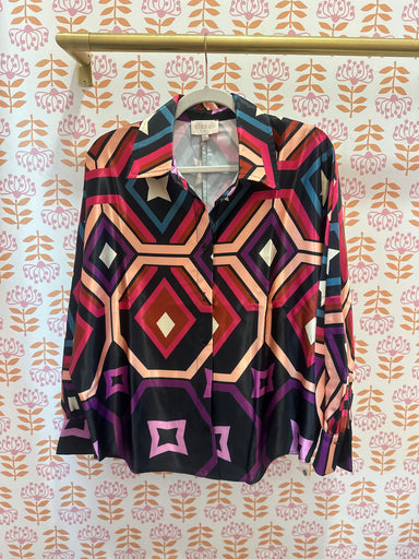 Make a statement with this eye-catching Medallion Print Batwing Shirt in vibrant magenta multi. The bold geometric medallion pattern brings instant...