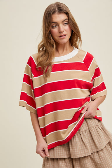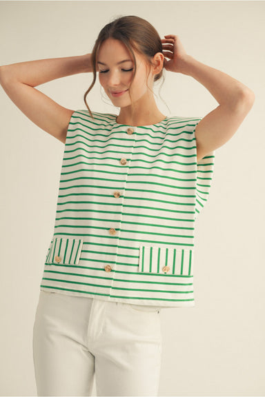 Elevate your wardrobe with this charming stripe peterpan collar top in rich brown. The whimsical peterpan collar adds a touch of vintage-inspired e...