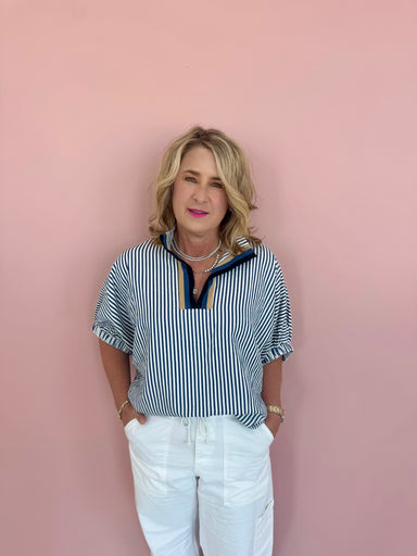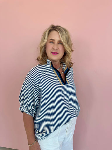 Introducing the versatile Britt Top, the perfect addition to any wardrobe. With a relaxed fit, short puff sleeves, and a playful ruffled collar, th...