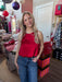 Slip into the Tazmin Top in Dark Red and let your wardrobe do the talking. This rich, moody hue brings instant sophistication to any outfit, whether you're dressing it up for a night out or keeping it casual with your favorite jeans. The perfect piece for those who love a little drama with their style—because sometimes the best fashion statements are made in deep, gorgeous red.