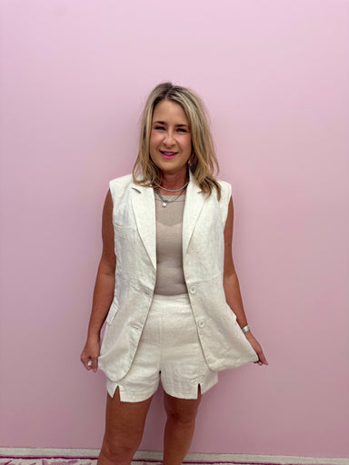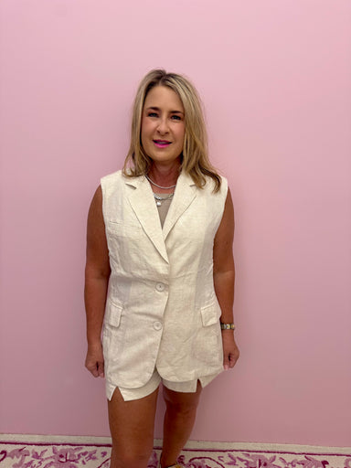 The Lizzie Vest is crafted from breathable linen, offering lightweight comfort and natural texture. Featuring a classic button-front design, it pro...