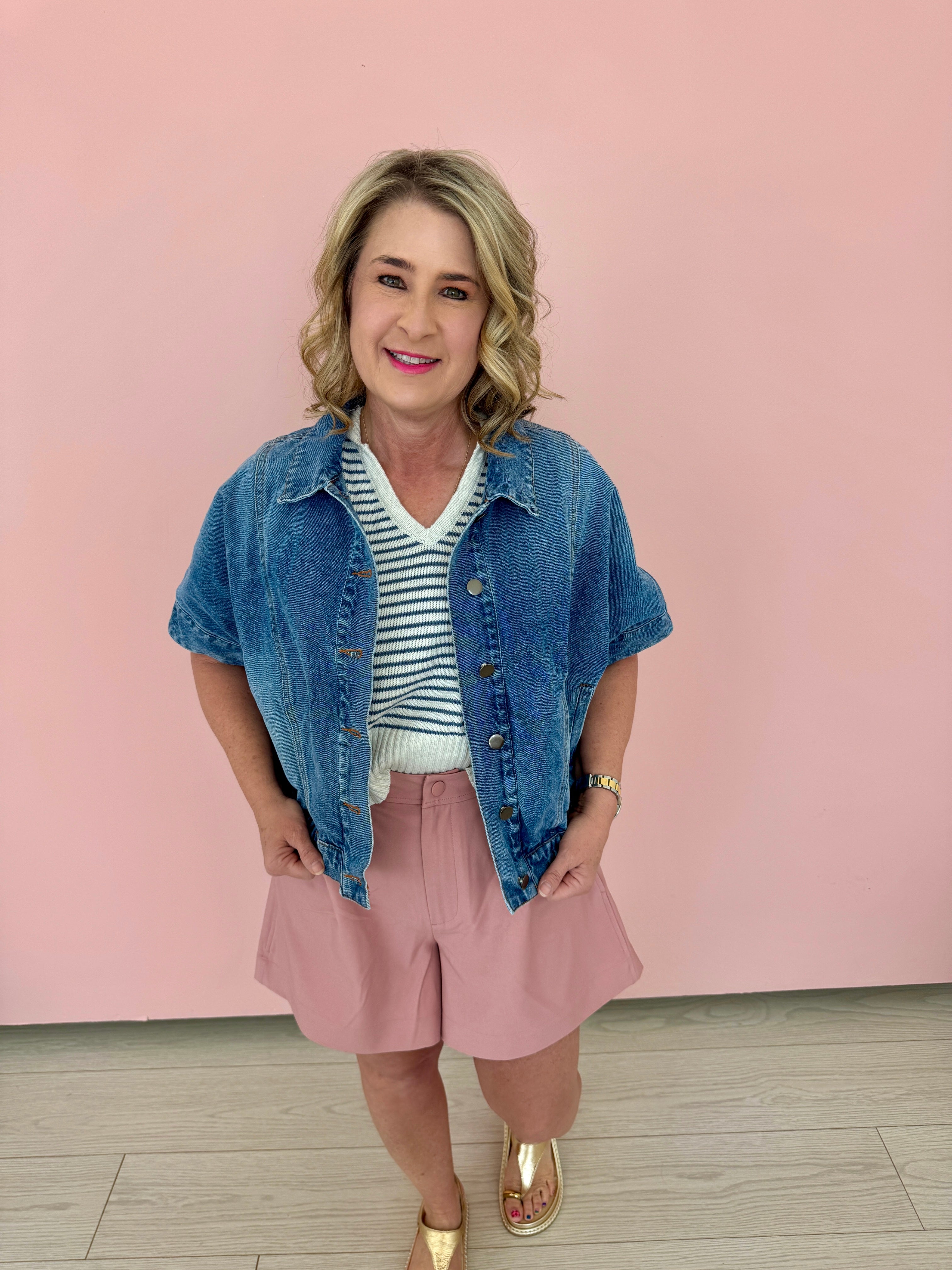 Expertly crafted for maximum comfort and style, our Dolman Denim Jacket is a must-have addition to your wardrobe. Made from high-quality denim, this button down jacket is perfect for any casual or formal occasion. Its versatile design makes it the perfect choice for any fashion-forward individual.