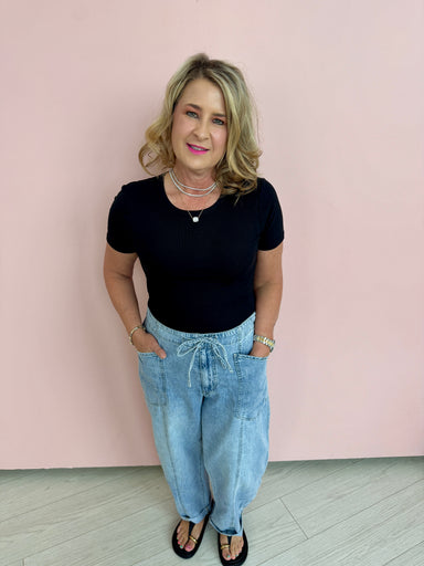 This Second Skin Crew Top in Black is designed for ultimate comfort and versatility. With a classic crew neck and short sleeves, it's perfect for e...