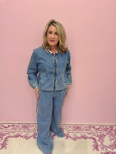 The Denim Stripe Top blends timeless denim fabric with a playful striped pattern, creating a casual yet stylish piece perfect for everyday wear. Fe...