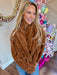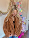 This brown furry cropped long sleeve coat offers a sophisticated blend of warmth and style. Crafted with plush, soft fabric, it provides cozy comfort while its cropped design adds a modern, tailored silhouette. Ideal for layering, this coat elevates any outfit with expert attention to texture and fit.