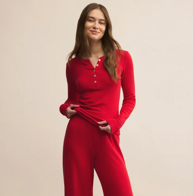 Add a pop of playful charm to your wardrobe with the Holly Pointelle Long Sleeve Top in vibrant red. Its delicate pointelle knit offers a peekaboo ...