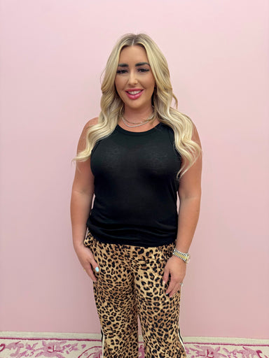 This black and cream tank top features elegant detailing along the neckline, adding a refined touch to a classic silhouette. Crafted for both comfo...