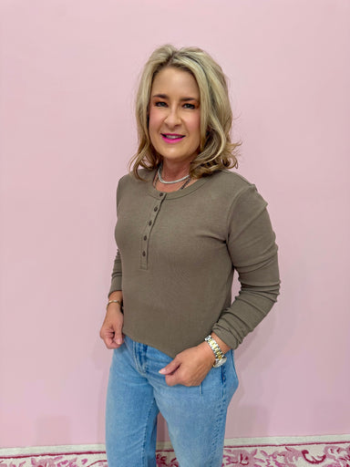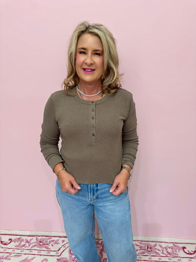 The Rugby Henley in Sandalwood by Z Supply is a classic, relaxed-fit top featuring a soft, breathable fabric with a traditional henley neckline a...