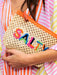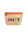 The Antigua "Salty" Zip Pouch is here to bring all the beach vibes to your accessories collection. Crafted with woven straw with a waterproof PVC inner liner and topped with playful multicolored "SALTY" embroidery, this pouch is your sunny day essential. Featuring a vibrant orange zipper and a tassel pull, it's the perfect size to stash your sunnies, sunscreen, or beach-day must-haves. Compact, lightweight, and oh-so-cute, it’s the ultimate companion for poolside lounging or seaside adventures.