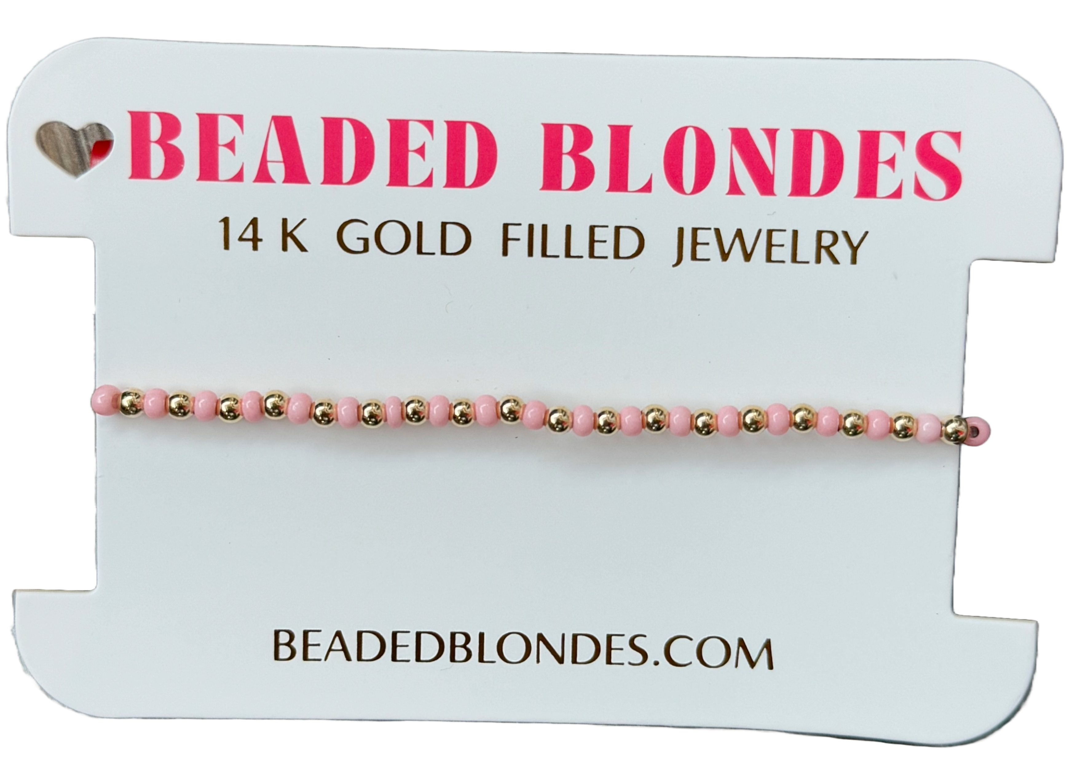The Demi Bracelet is expertly crafted with 14K gold filled beads and durable elastic string, making it perfect for everyday wear. The mix of Czech glass beads and gold accents add a touch of elegance to any outfit. Plus, it's sweat-proof, water-proof, and tarnish-free for a worry-free accessory.