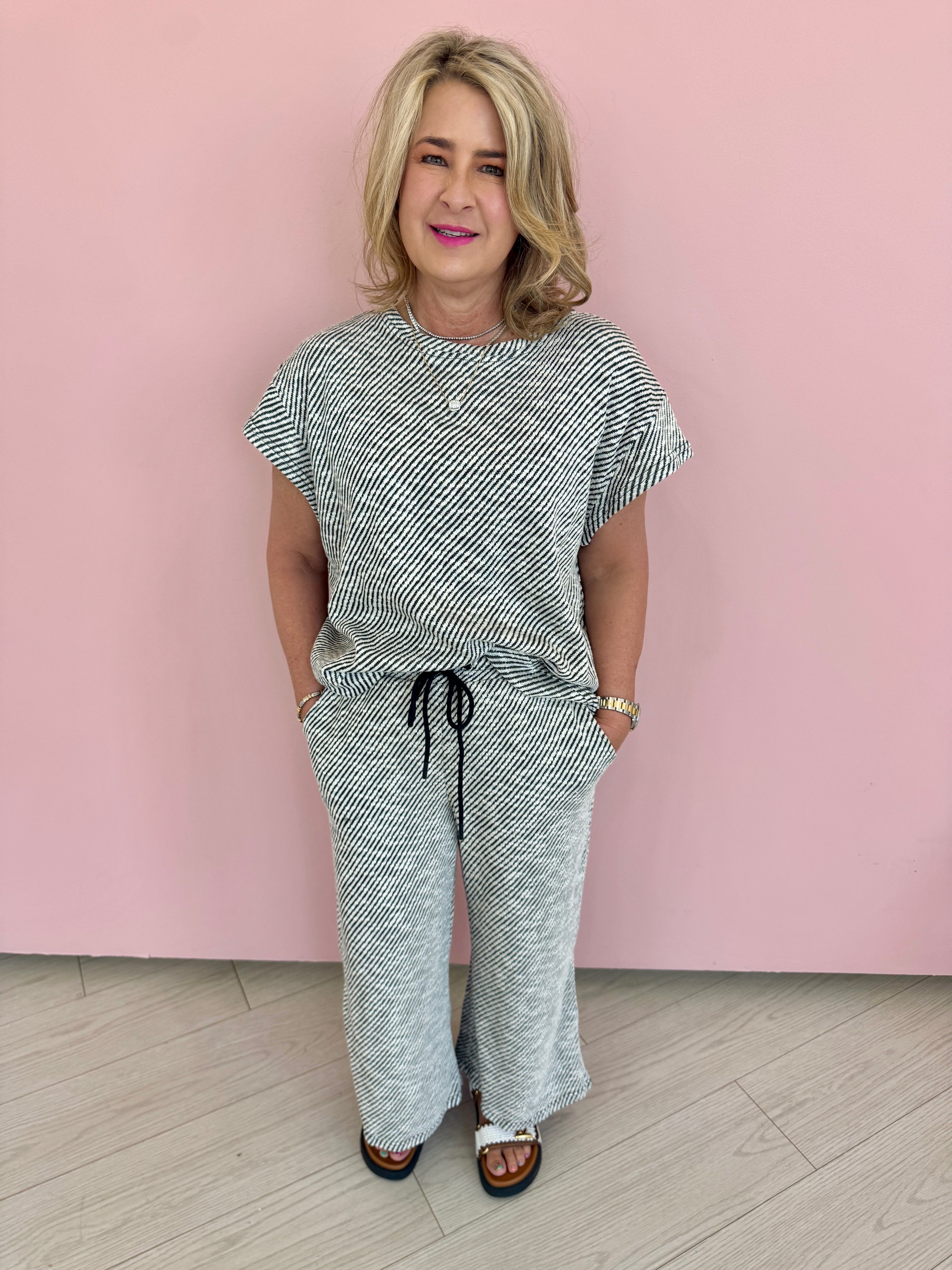 Upgrade your wardrobe with our stylish Diagonal Striped Cropped Pants. These black pants feature a chic striped pattern and a cropped length for a modern and flattering look. Perfect for both casual and formal occasions. Enhance your fashion game with these must-have pants.