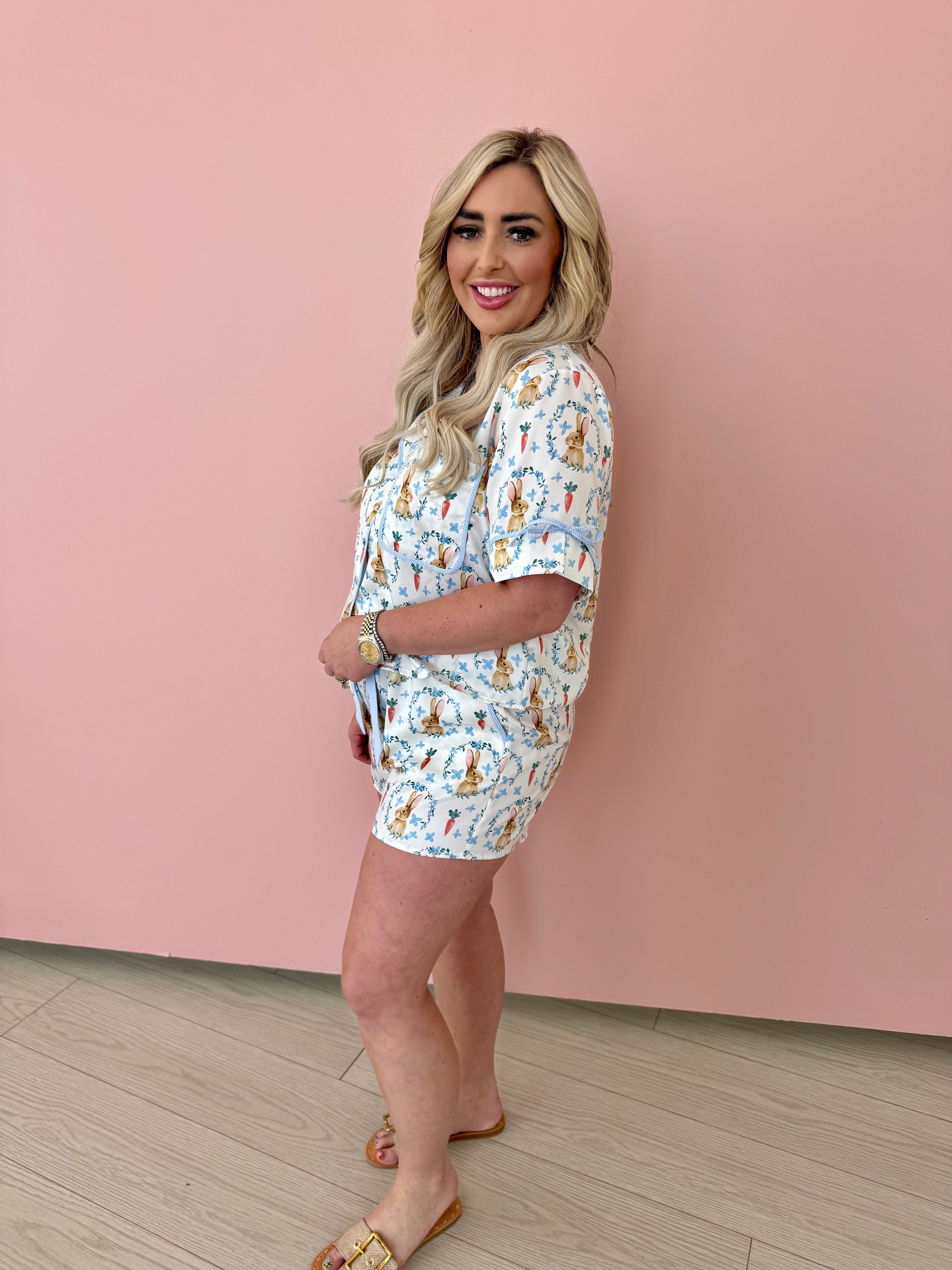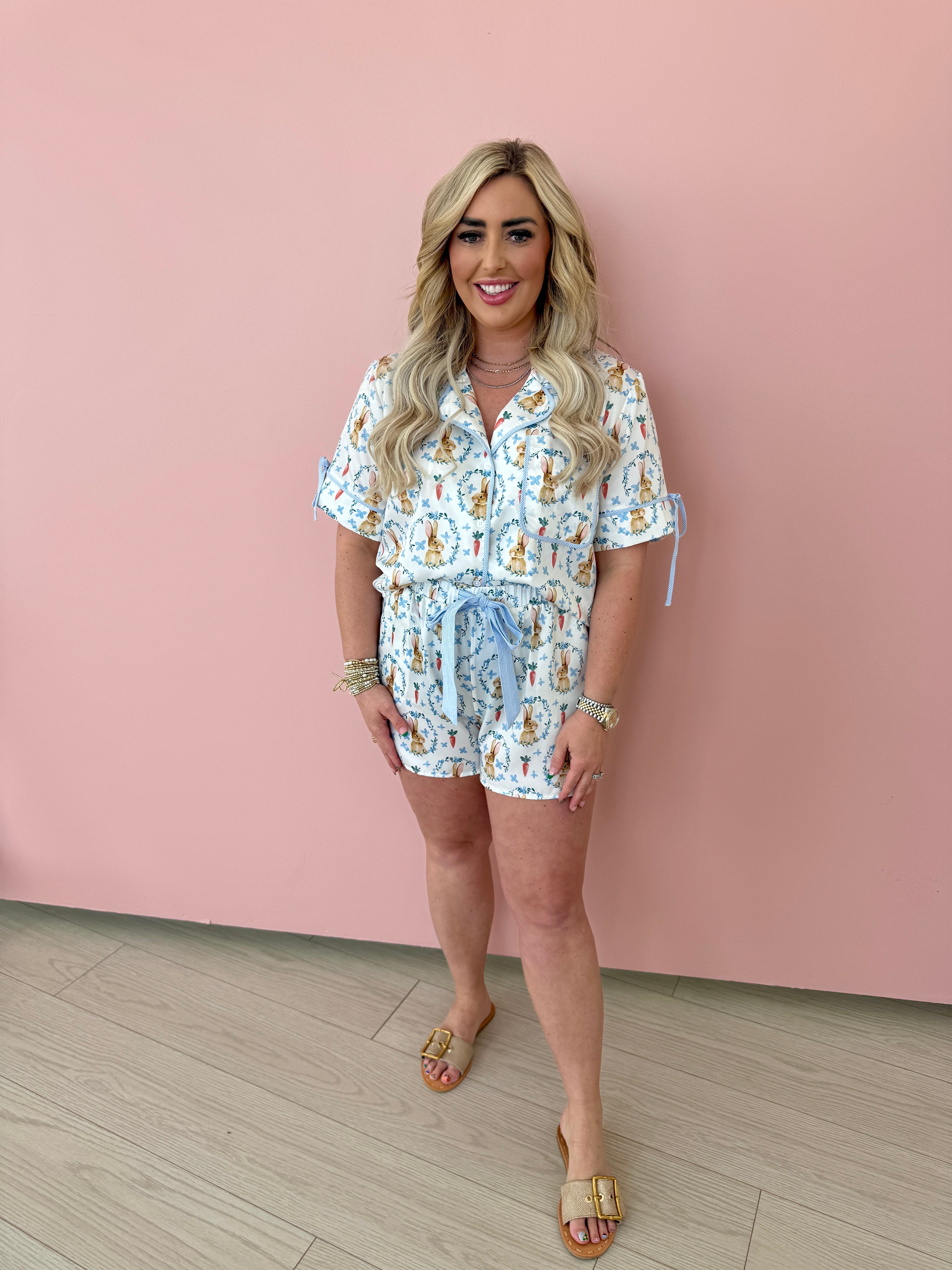 Introducing our Easter Bunny PJ Set! This adorable pajama set features a playful Easter bunny design, perfect for Easter morning or any cozy night in. Made with high-quality material for ultimate comfort and durability. Don't miss out on this cute and festive addition to your sleepwear collection.