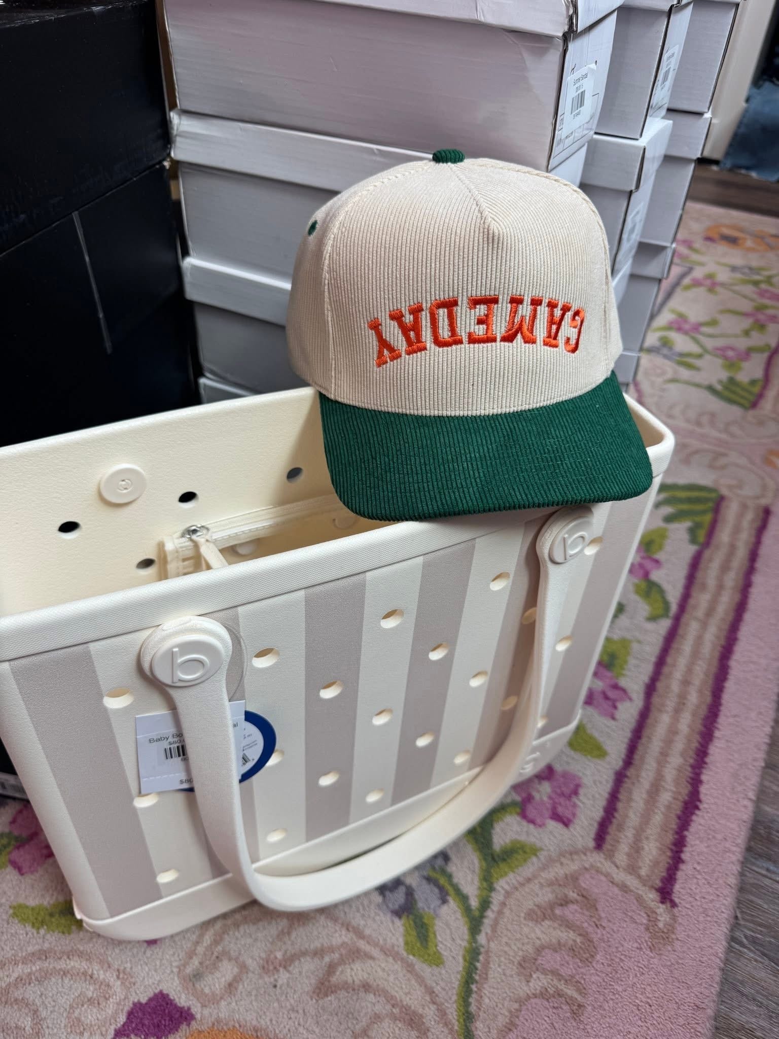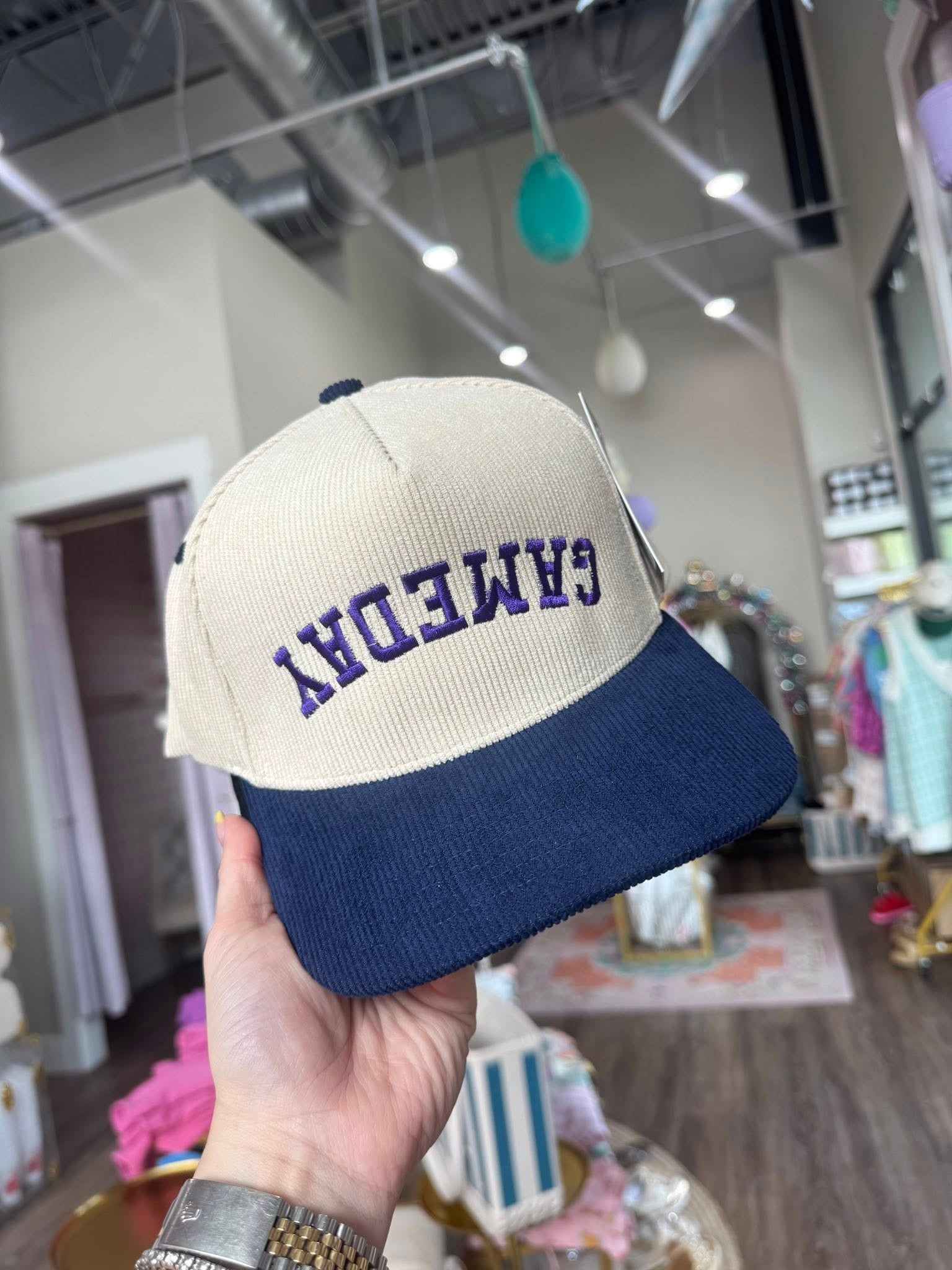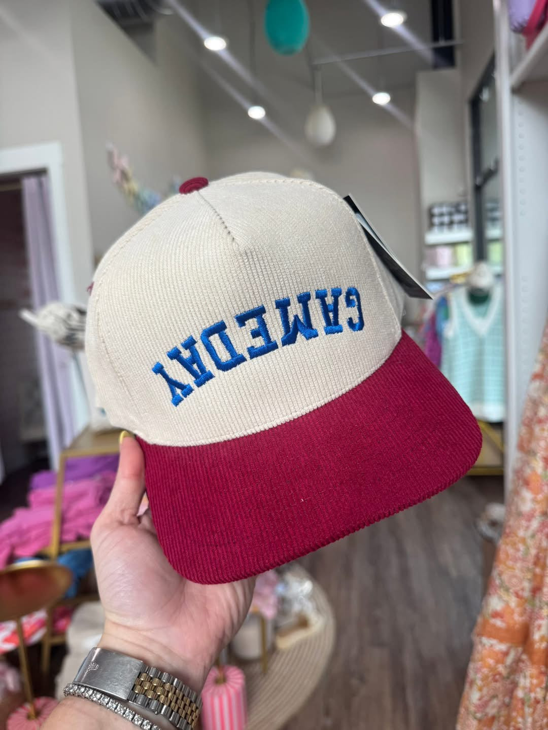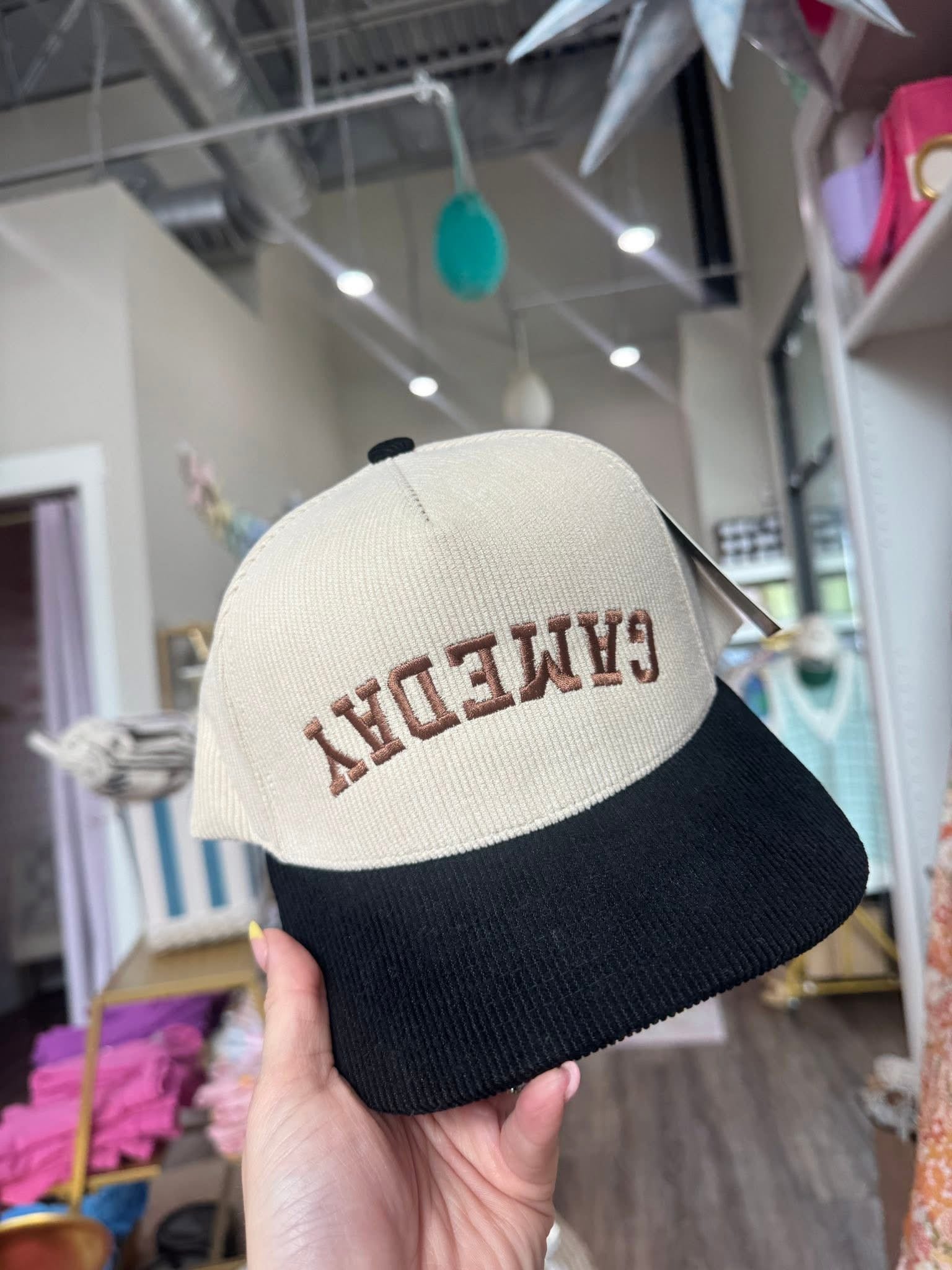 Stay cool and stylish with our Game Day Upside Down Baseball Cap. Perfect for any sports event, this trucker hat features a unique and eye-catching design with "game day" in an upside-down font. With its breathable and comfortable material, you'll be sure to turn heads while supporting your team.