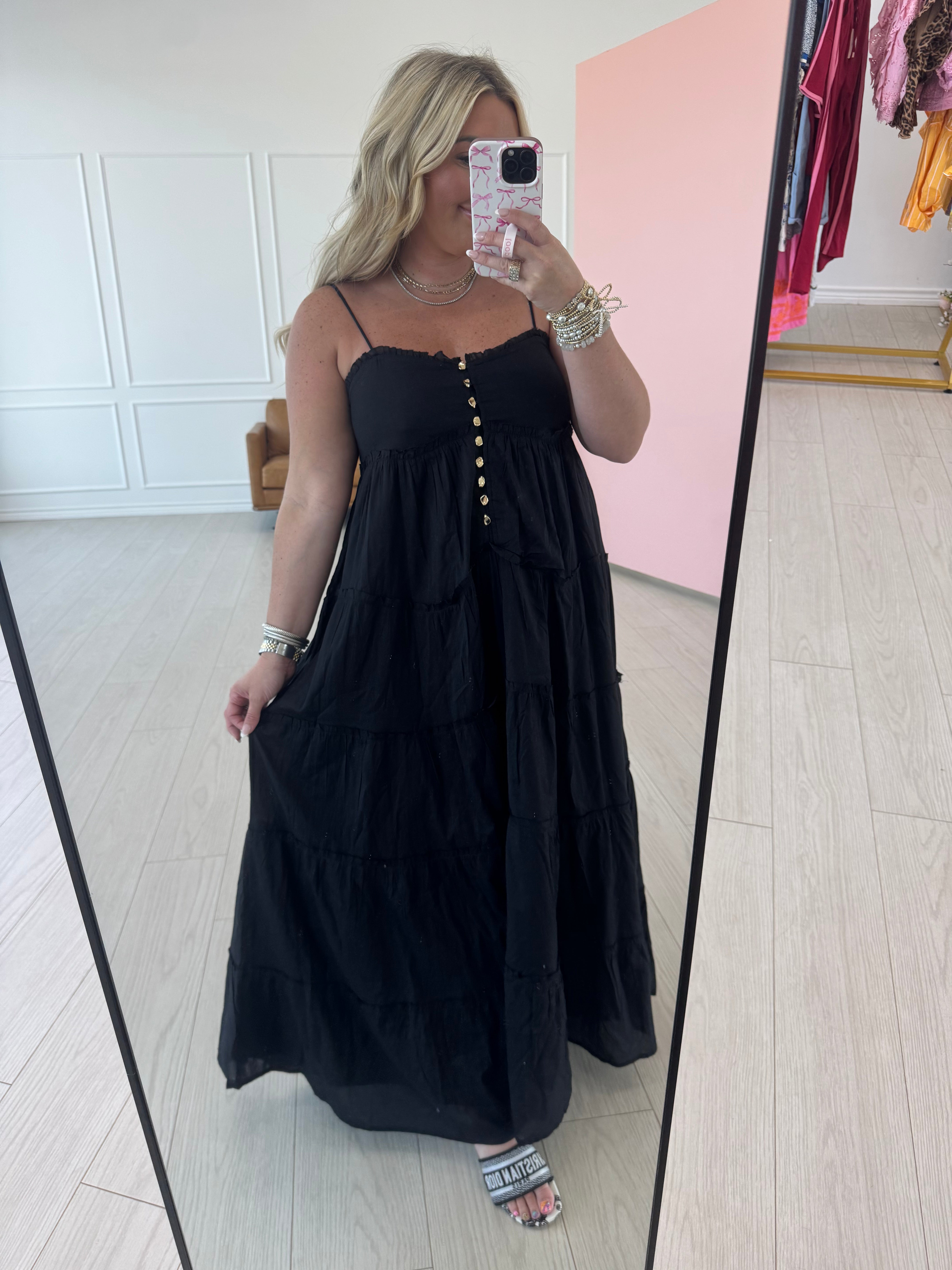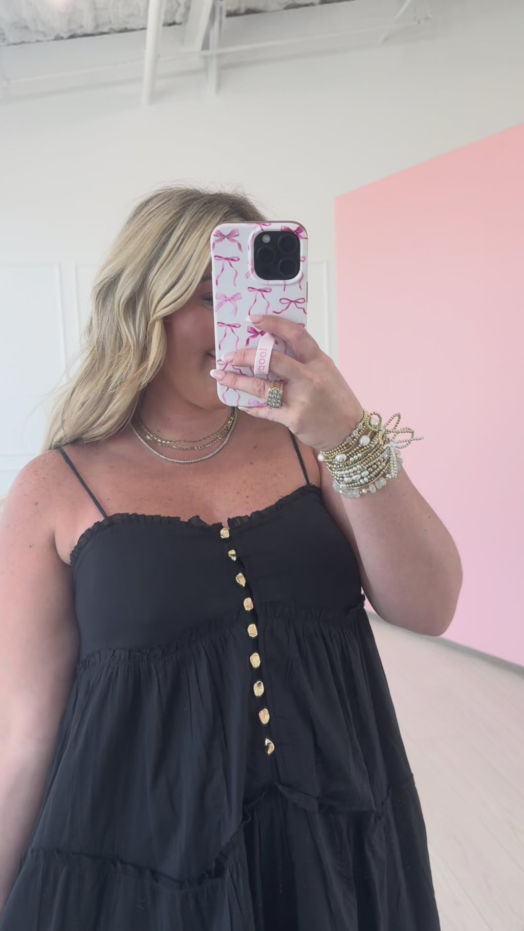 The Gracie Midi Dress offers sophisticated elegance in classic black. Featuring a flattering silhouette that hits mid-calf, this versatile piece transitions seamlessly from office to evening events. The thoughtfully structured design provides both comfort and a polished appearance, making it an essential addition to any curated wardrobe.