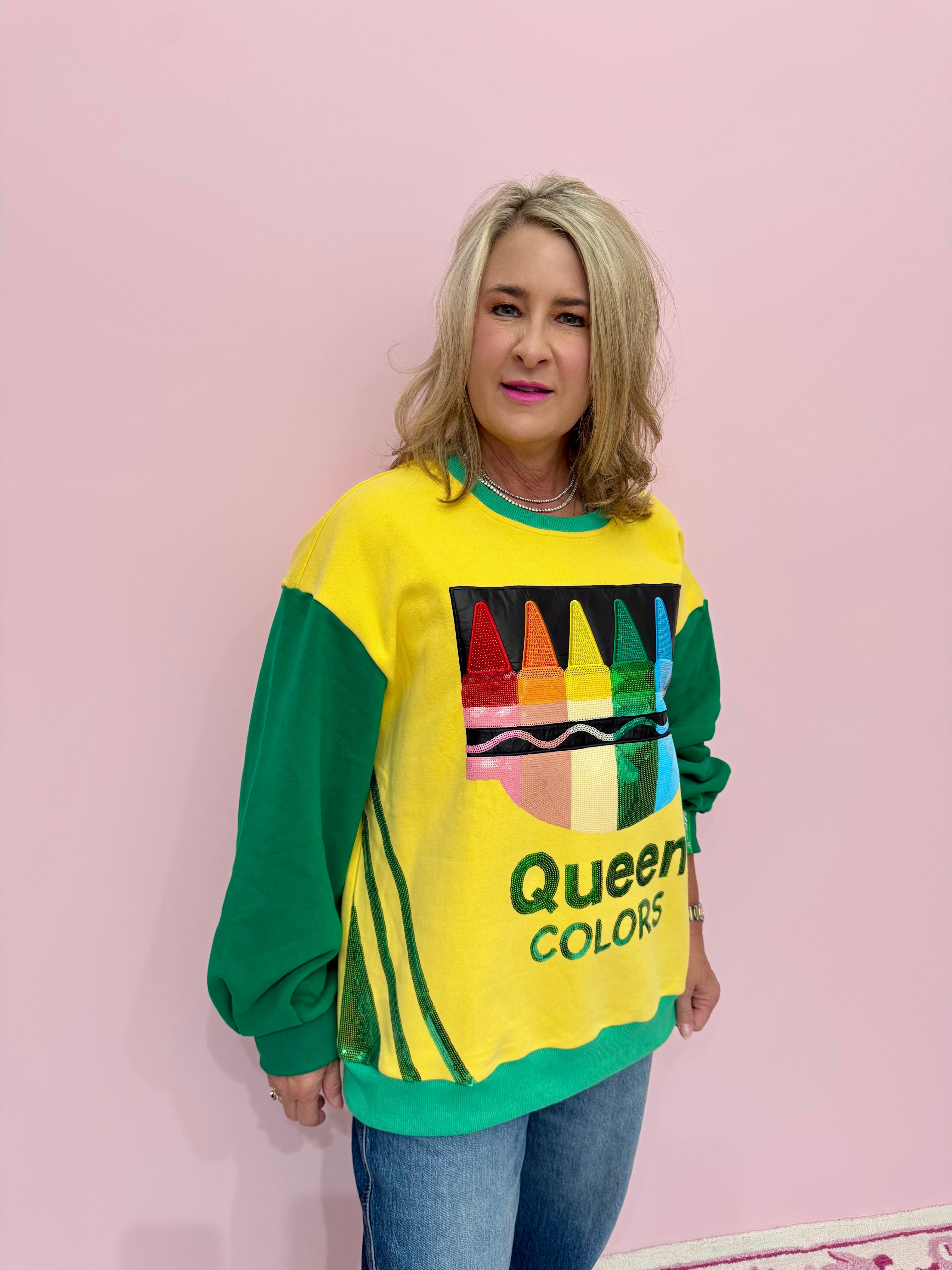 Green & Yellow 'Queen Colors' Crayons Sweatshirt
