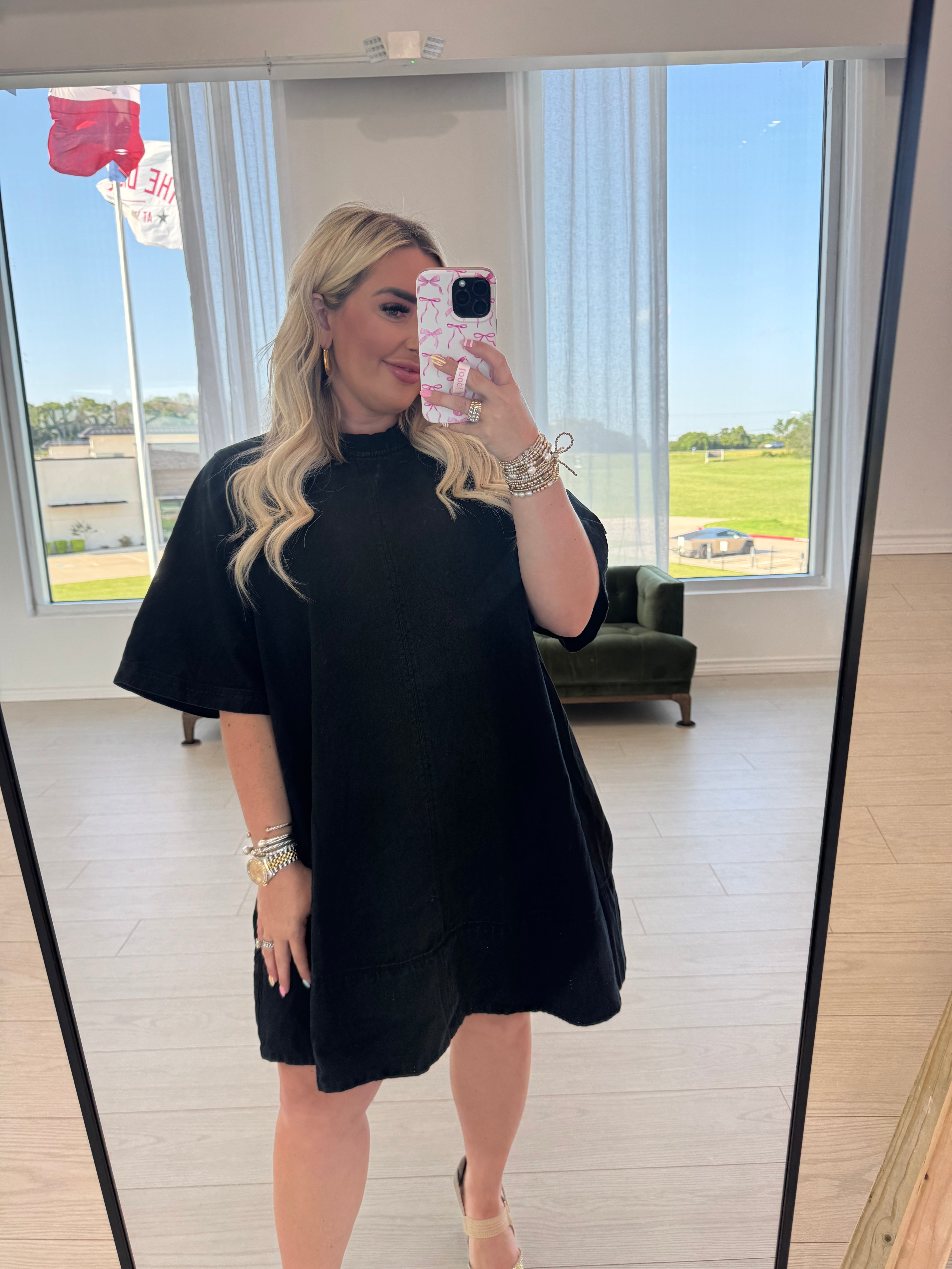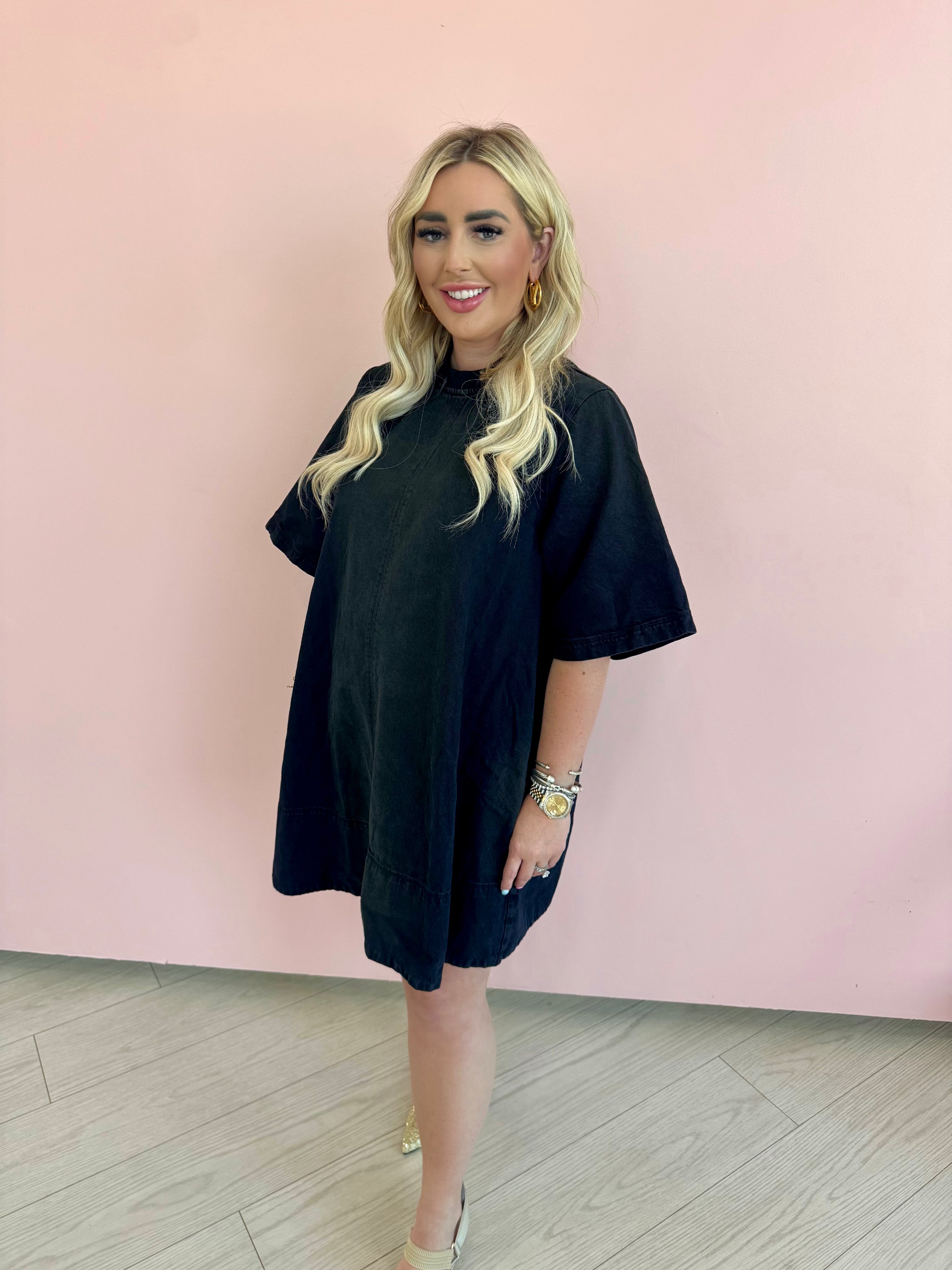 The Harlow Mini Dress combines casual t-shirt comfort with premium denim construction for versatile style. This Free People design features a relaxed silhouette that transitions effortlessly from day to evening. The mini length creates a flattering profile while the durable denim material ensures longevity through multiple seasons and styling options.