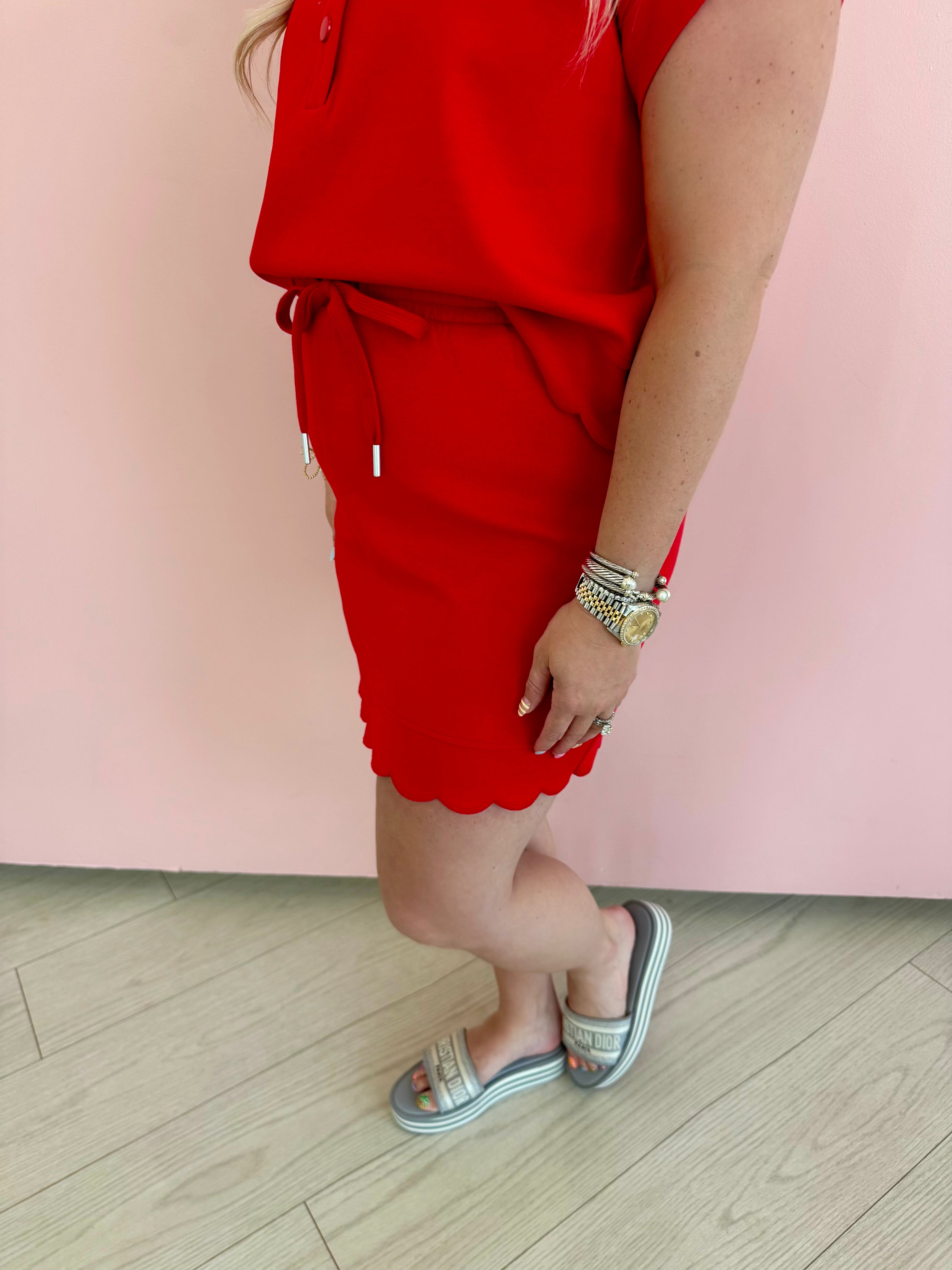 Introducing the Kara Pant, comfortable jogger pants designed with a cuffed bottom for added style and ease of movement. The vibrant red color adds a pop of color to any outfit. Expertly crafted for comfort and functionality.