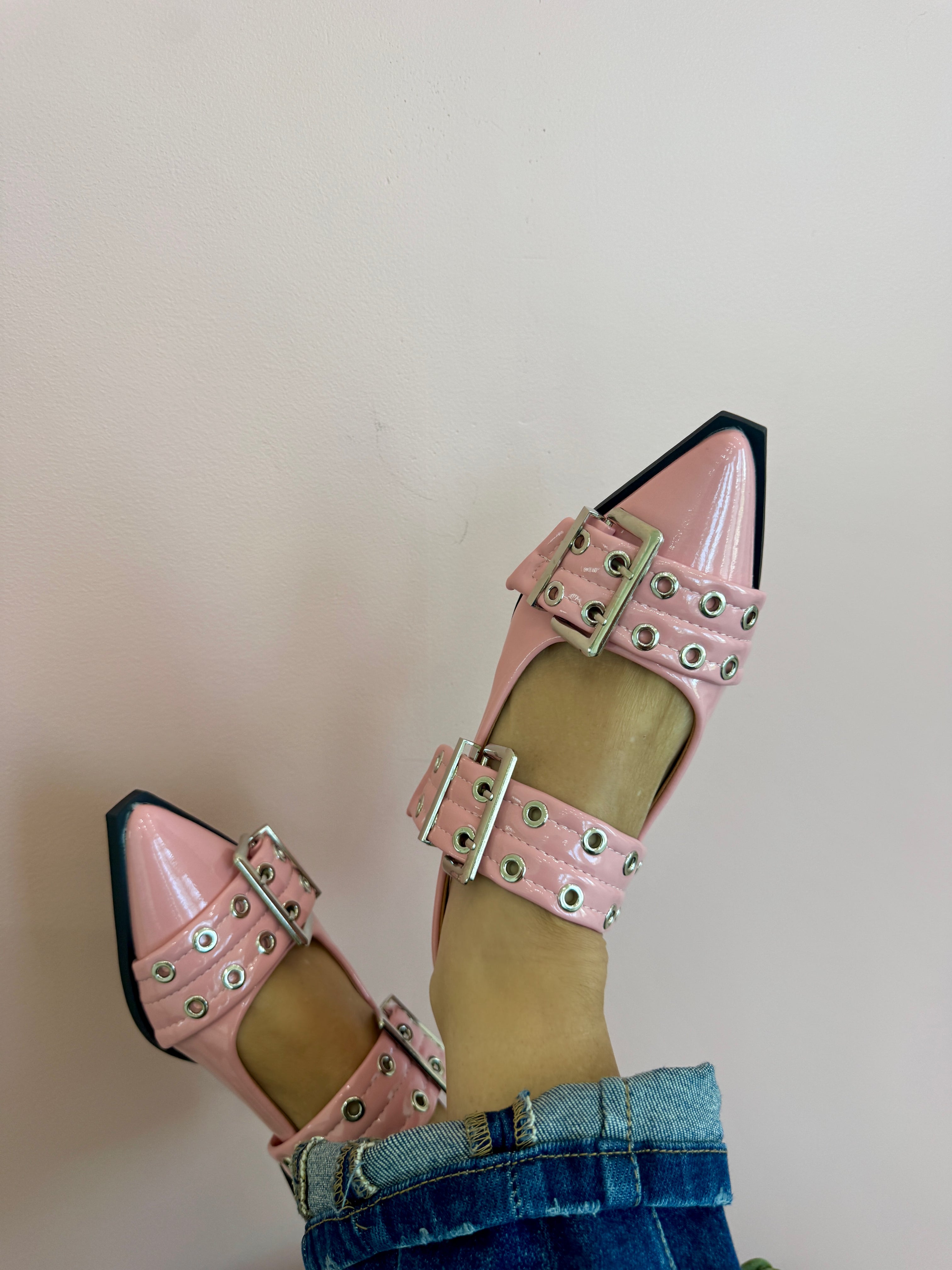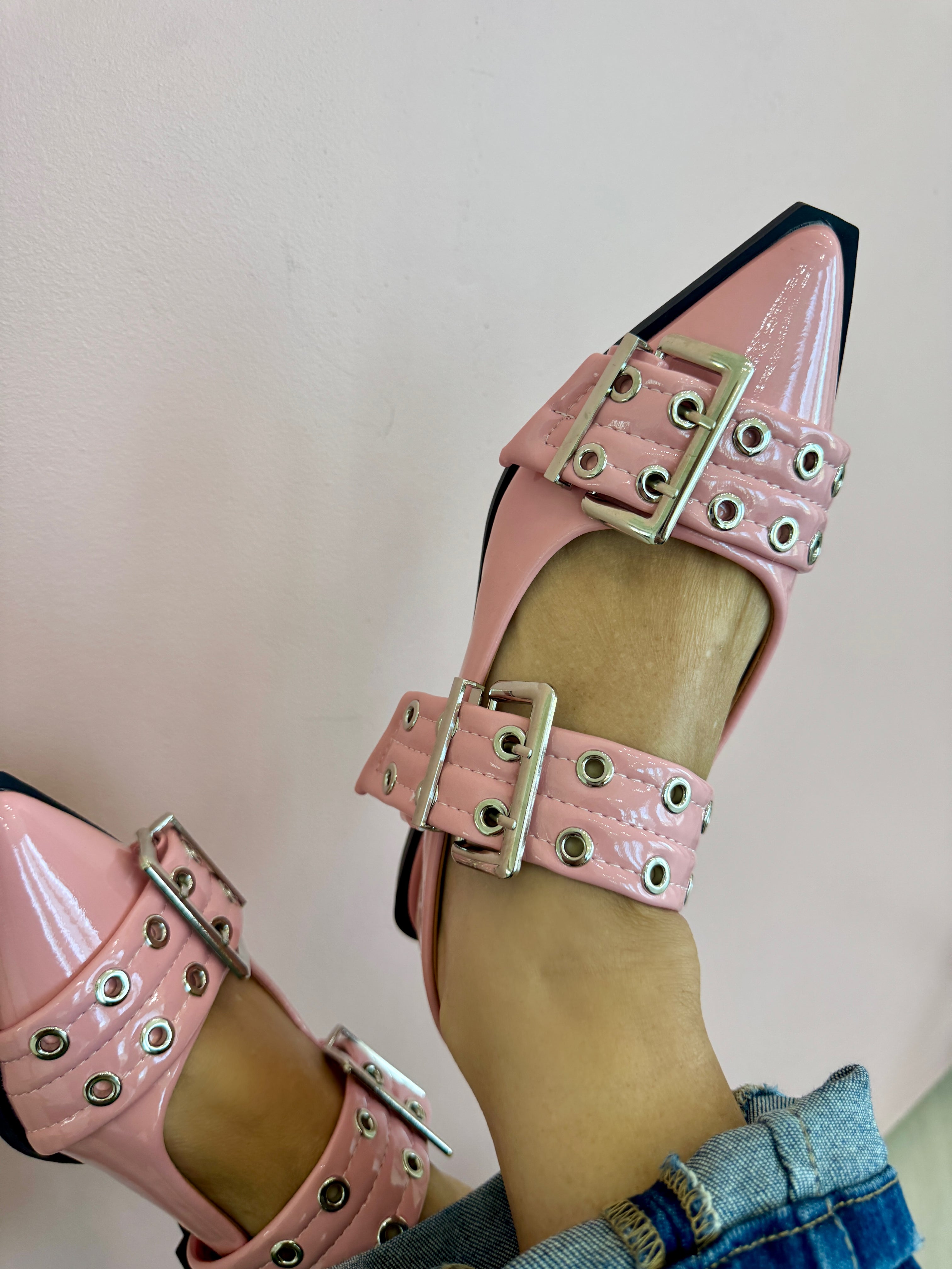 These Kenzie Buckle Flats in pink are the perfect blend of fashion and function. Featuring a stylish buckle design, these flats are both comfortable and chic. The pink color adds a touch of femininity, making them a versatile and trendy addition to any wardrobe. Expertly crafted for all-day wear, these flats are sure to become a staple in your shoe collection.