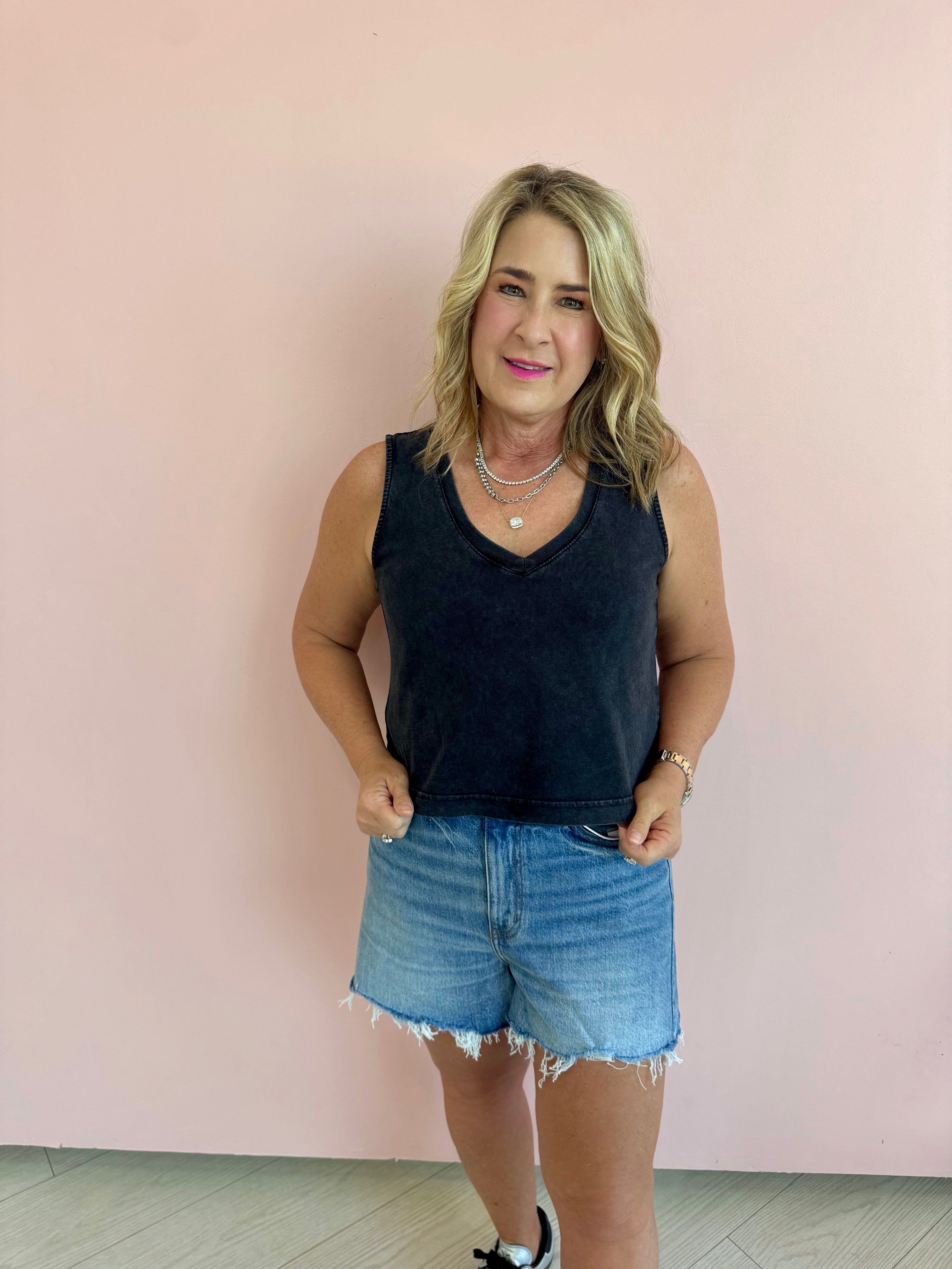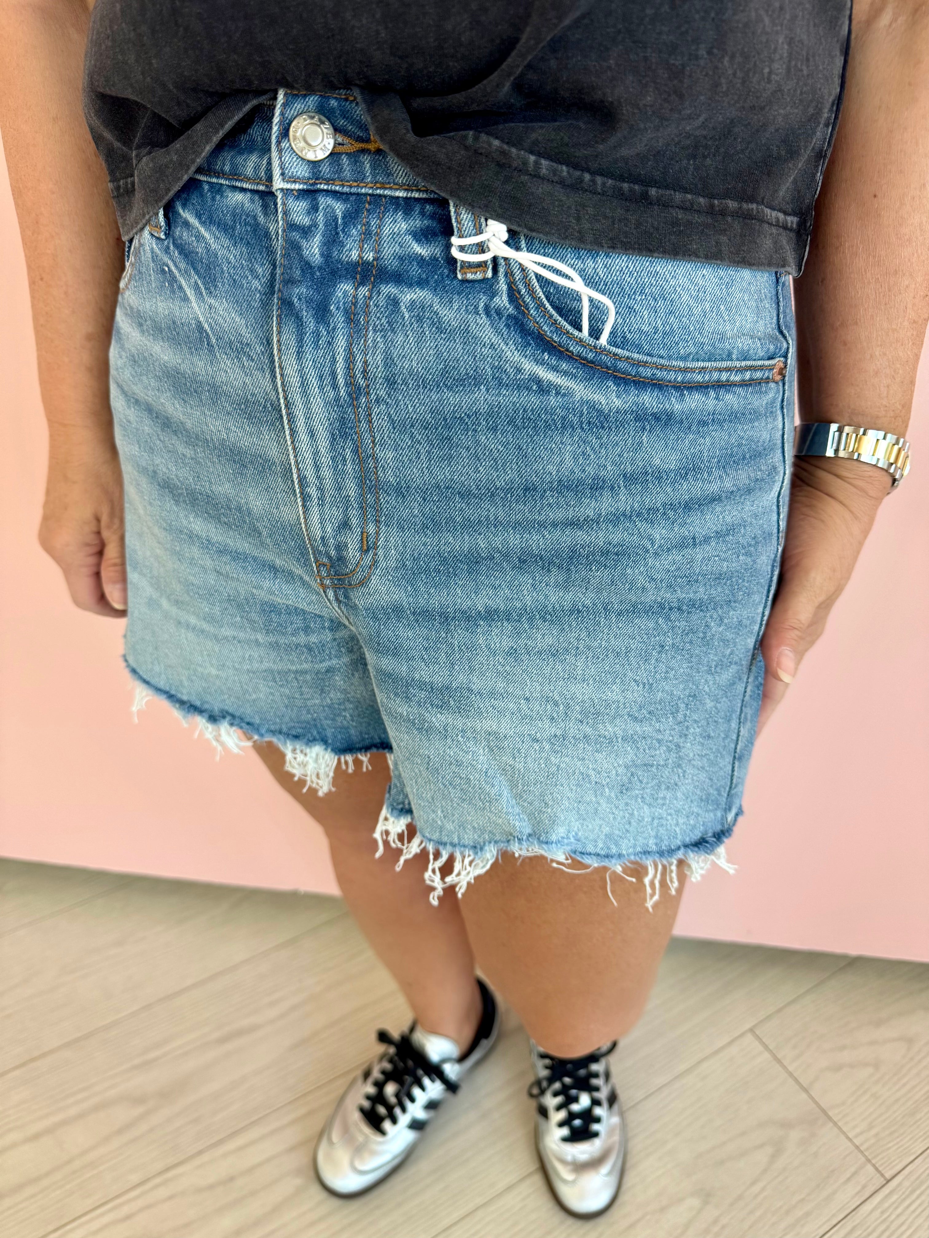 Elevate your summer style with our Knockout High Rise Denim Short. These a-line shorts feature a high rise for a flattering fit that accentuates your curves. Made with high quality denim, these shorts offer both comfort and style. Perfect for any casual occasion, these shorts will become a staple in your wardrobe.