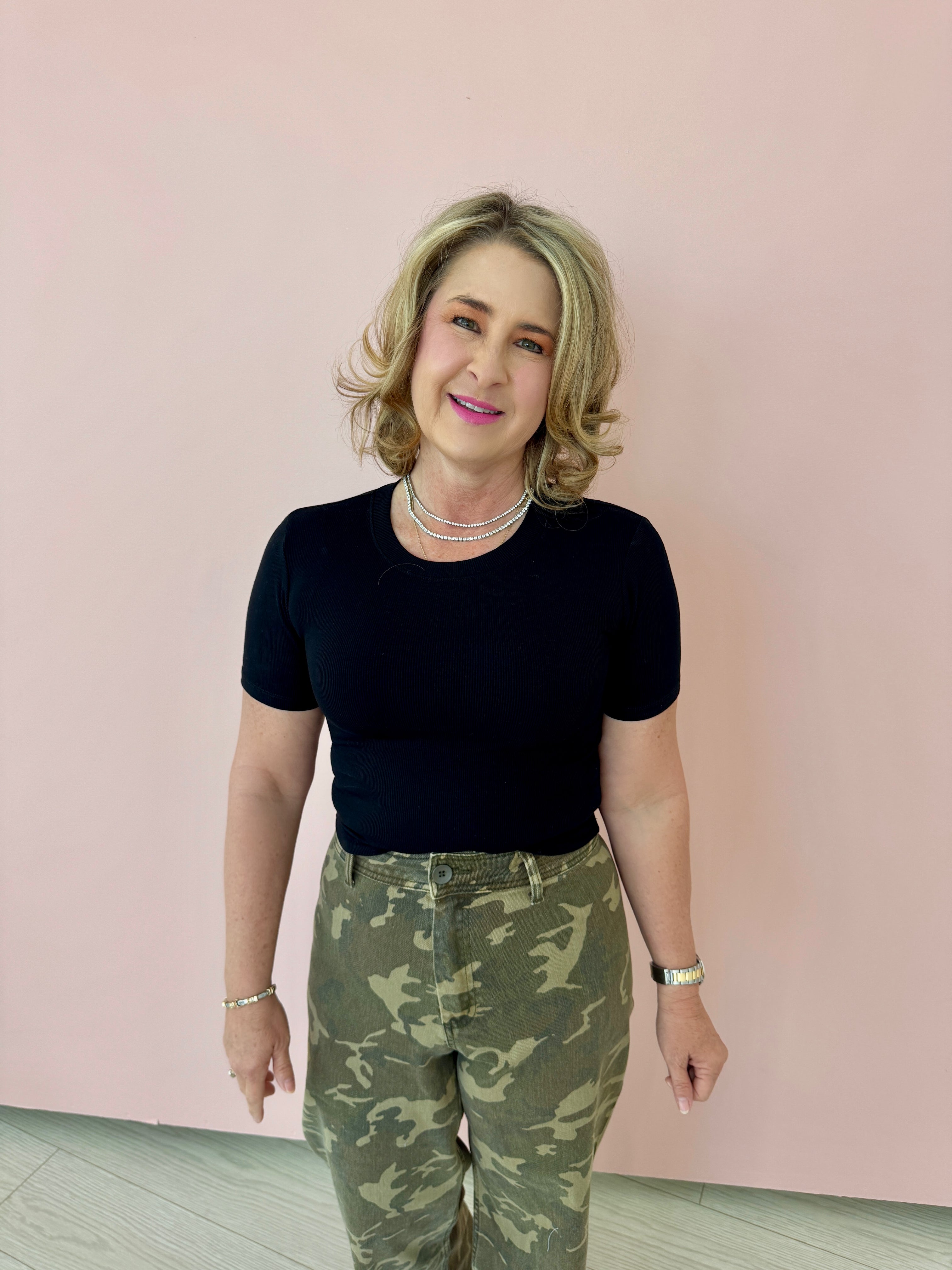 The Maddie Athleisure Baby Tee is a versatile and comfortable cropped tee that can be worn during workouts or as a cute top paired with denim. It features short sleeves, a rounded neckline, and a form-fitting silhouette. Perfect for any active lifestyle.