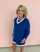 The Marx V-Neck Terry Sweatshirt in navy is expertly crafted with a v-neck design for a classic and versatile look. Made with soft terry material, this sweatshirt is comfortable and perfect for layering or wearing on its own. Upgrade your wardrobe with this essential piece.