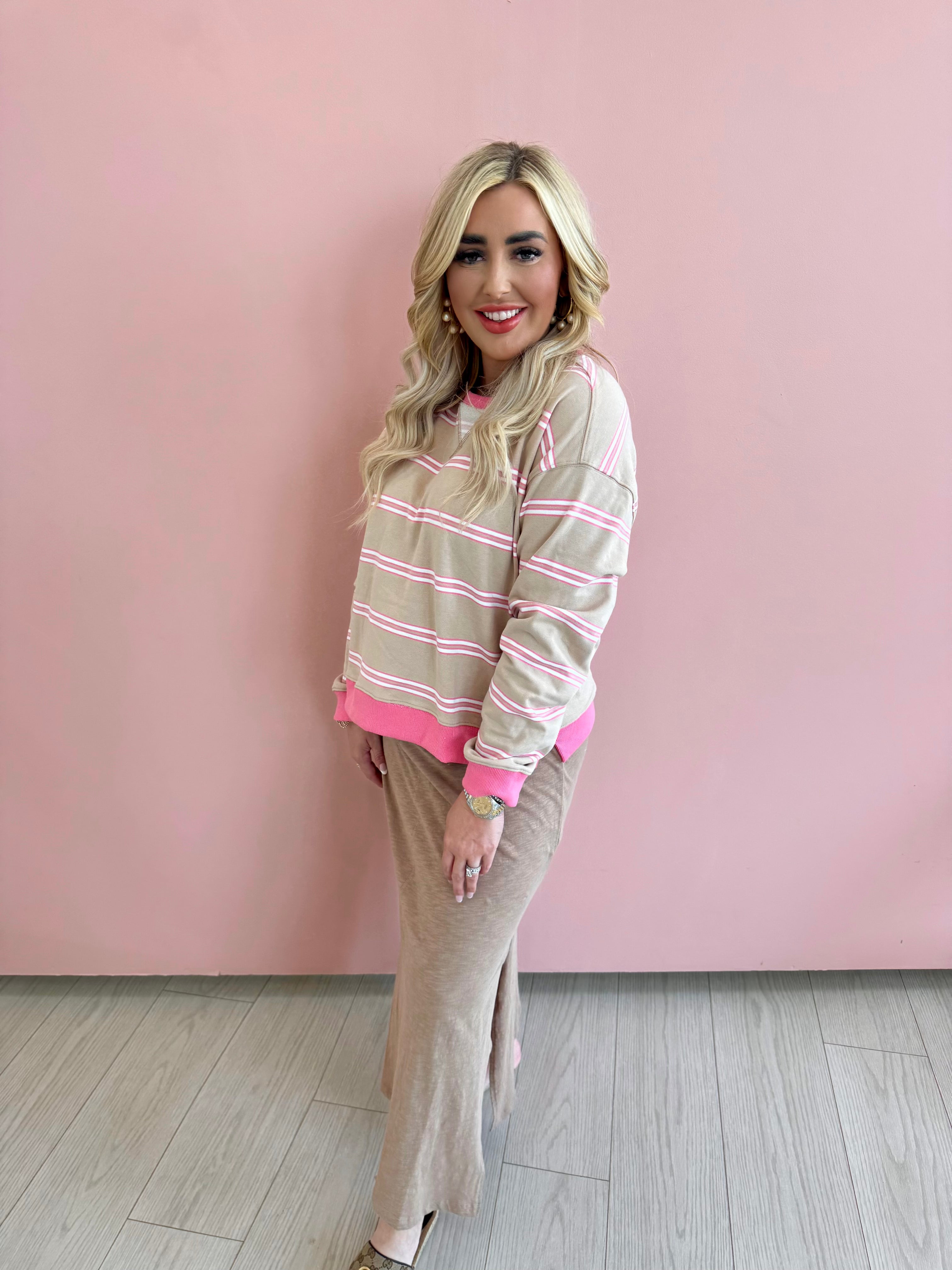 The Nadia Top is a knit striped pullover, perfect for adding a touch of style to your wardrobe. Made from high-quality materials, this top is comfortable and durable. Its classic stripes add an element of sophistication, making it a versatile piece for any outfit.
