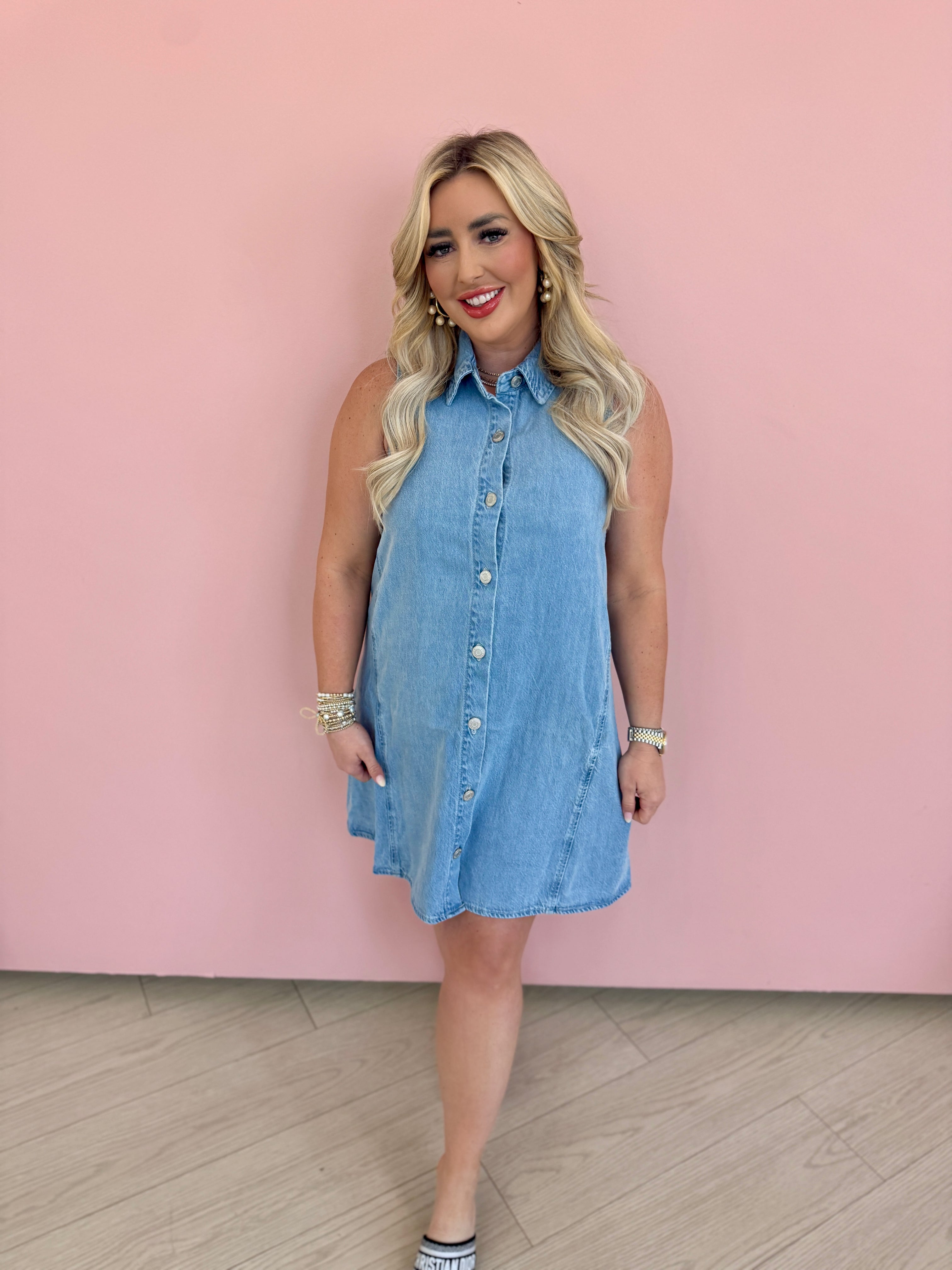 Unleash your inner fashionista with our New Day Twill Mini Dress. This light denim button down dress is the perfect addition to your wardrobe, providing both comfort and style. Made from premium quality twill fabric, it's the ideal dress for any casual occasion. Upgrade your look today!