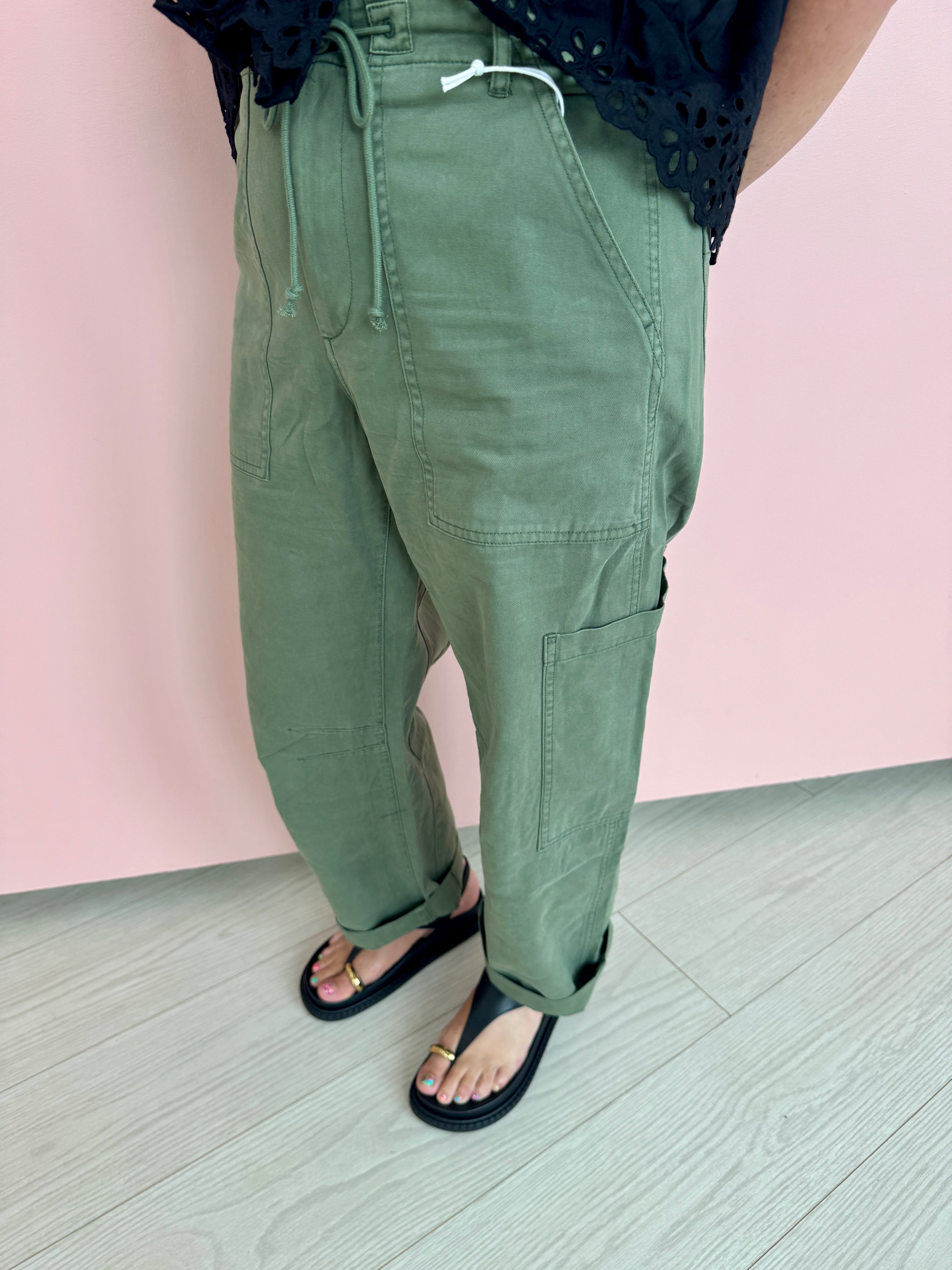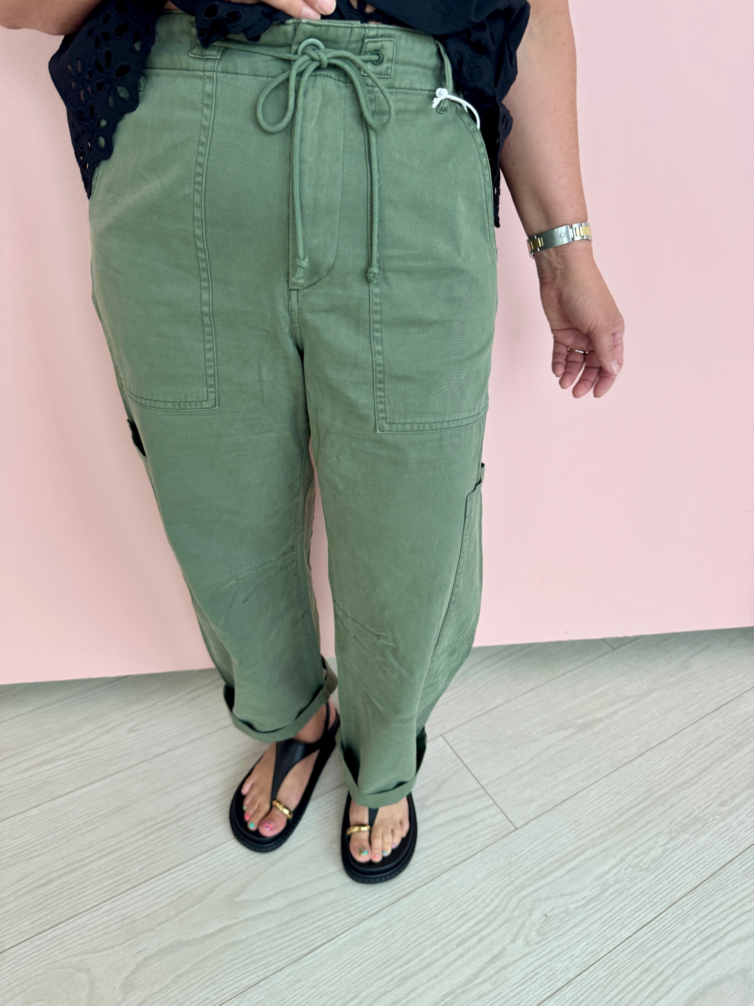 Introducing the Sabrina Curved Utility Pants, a versatile and stylish addition to your wardrobe. These camo green pants feature a drawstring waist for the perfect fit. Made with high-quality materials, they offer both comfort and functionality. Perfect for any occasion, these pants will elevate your look while providing maximum comfort.