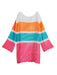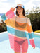 Dive into bold beach vibes with the Vera Cover-Up! This colorful crochet masterpiece is a symphony of vibrant stripes in orange, pink, turquoise, and white. The airy open-knit design makes it perfect for slipping over your swimsuit, offering a breezy layer that’s lightweight and stylish. Featuring bell sleeves and a relaxed fit, it’s the ultimate companion for poolside lounging or seaside strolling.