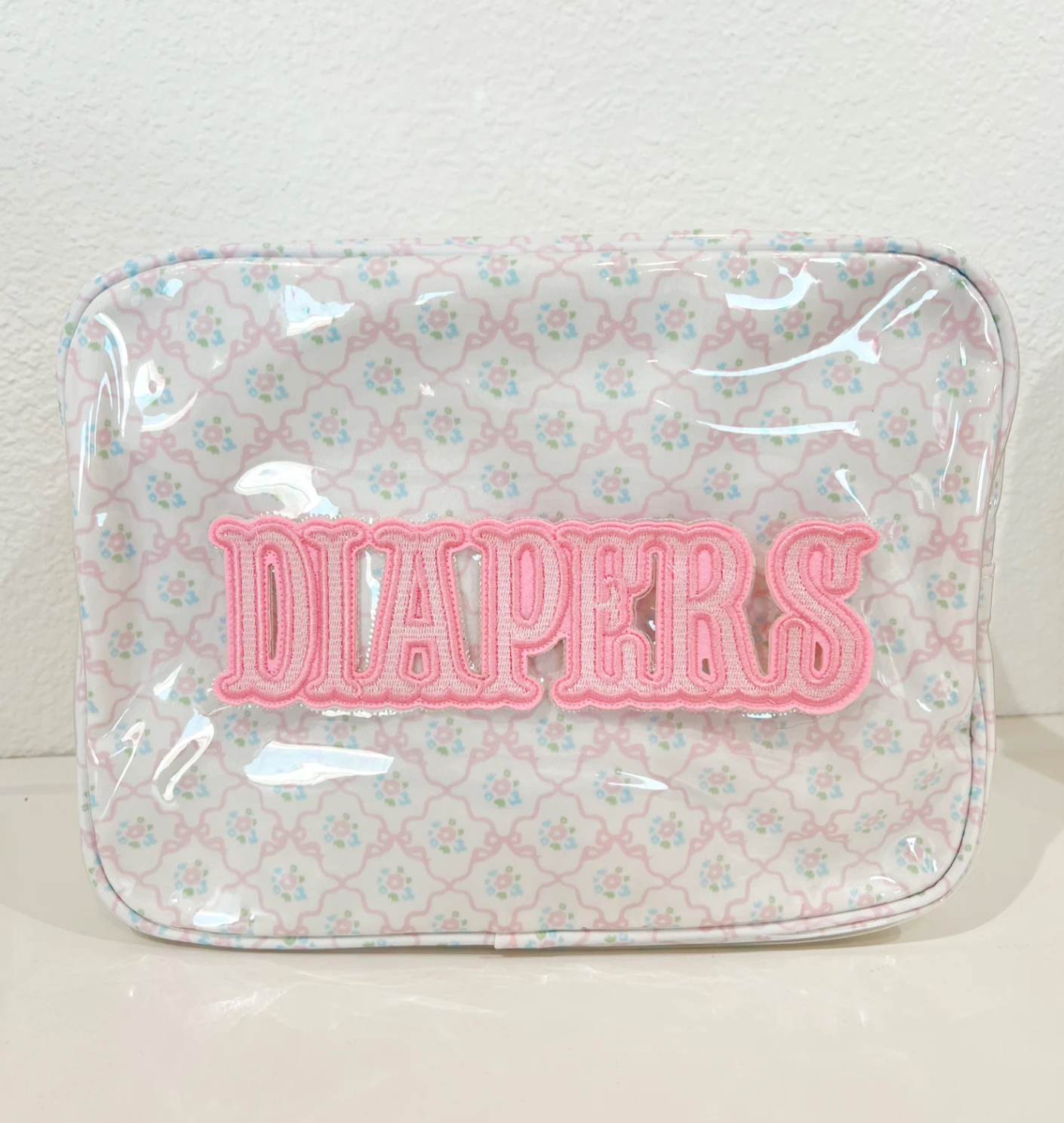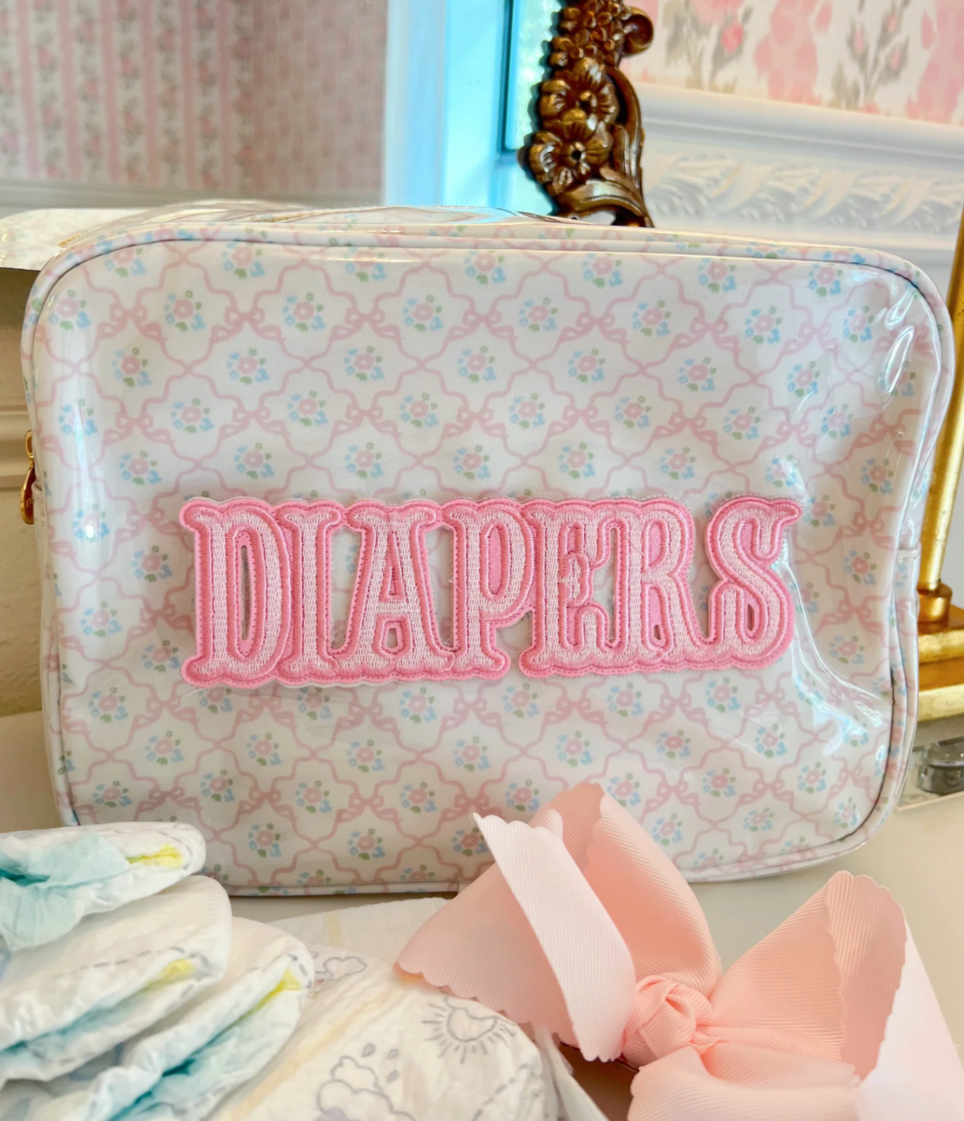 This XL Clear Coat Diaper Bag features gold hardware and a spacious interior with 1 zipper pocket and 3 side pockets for easy organization. Keep all your baby essentials within reach while on the go. Measures 11 x 5 x 8 inches.
