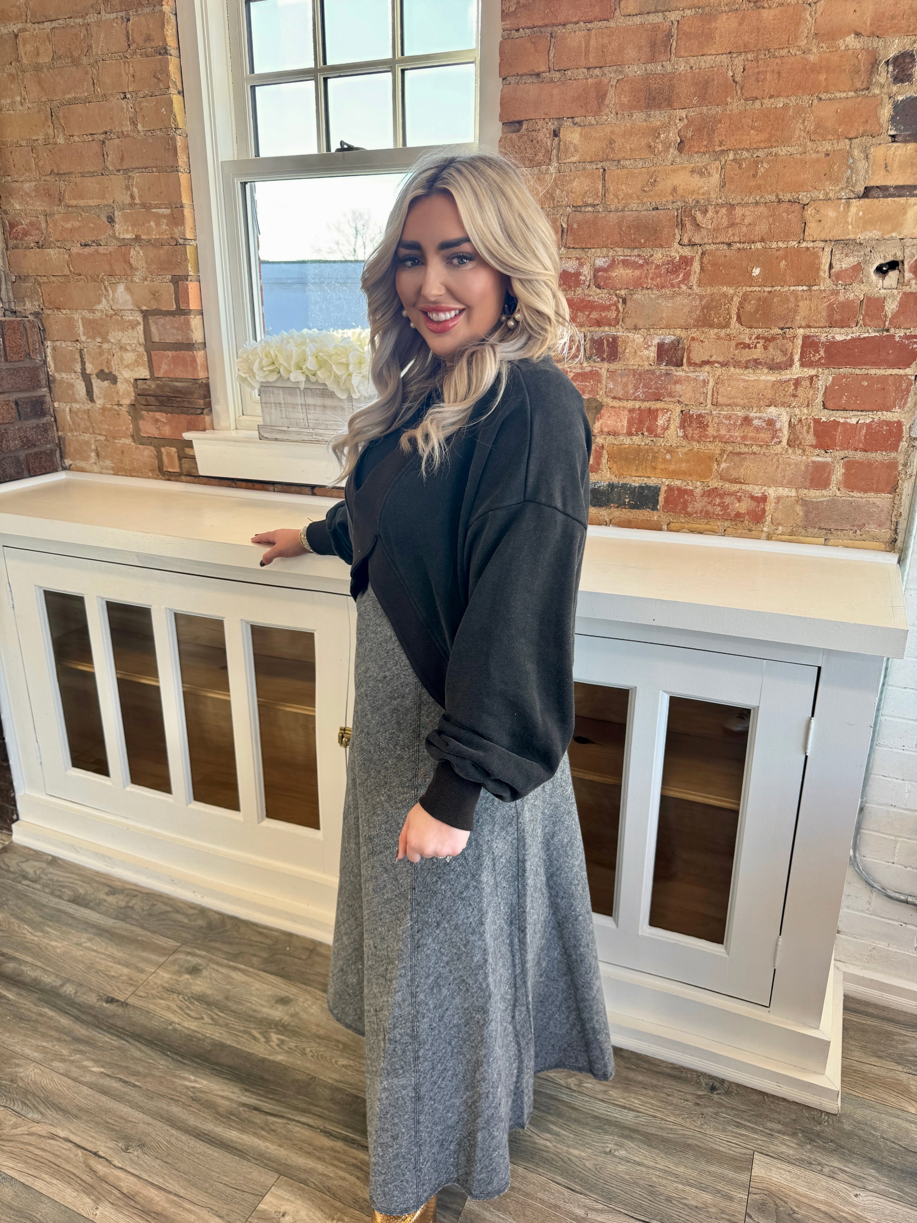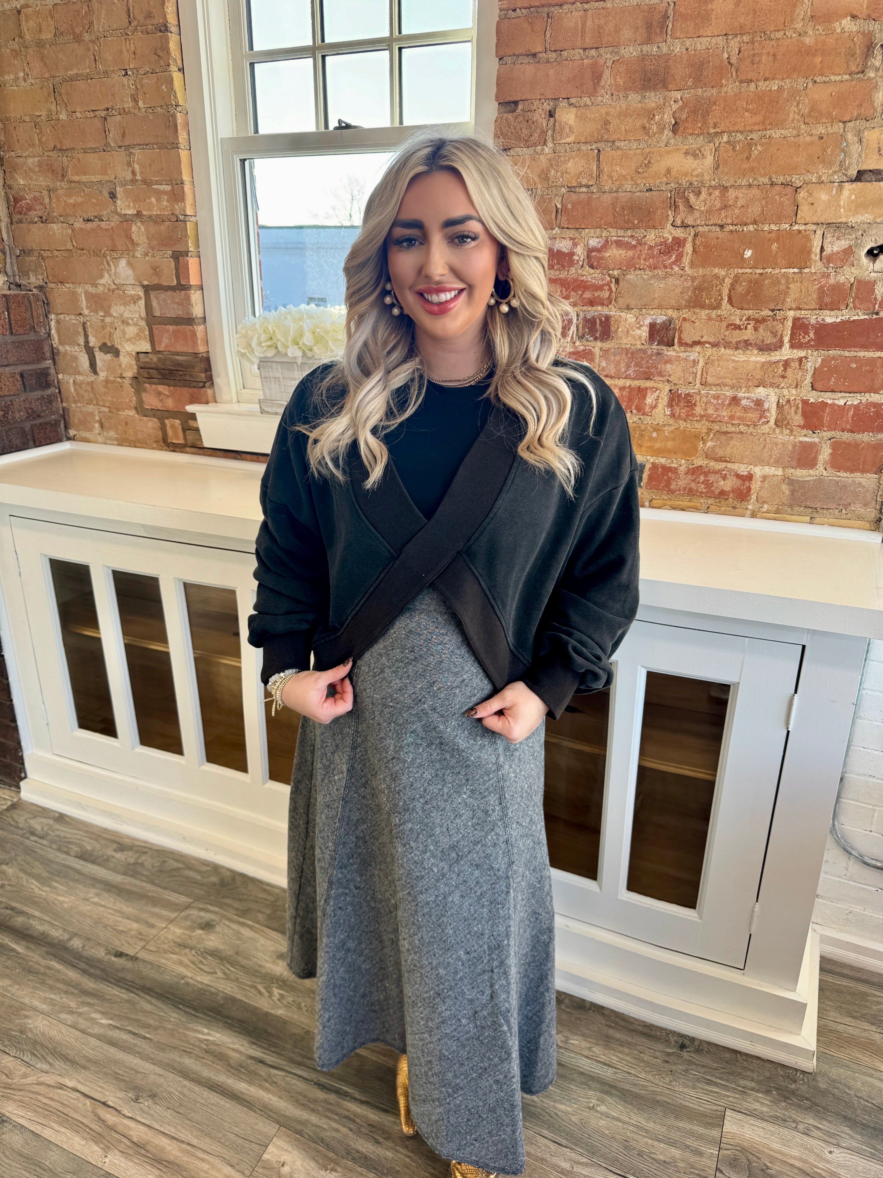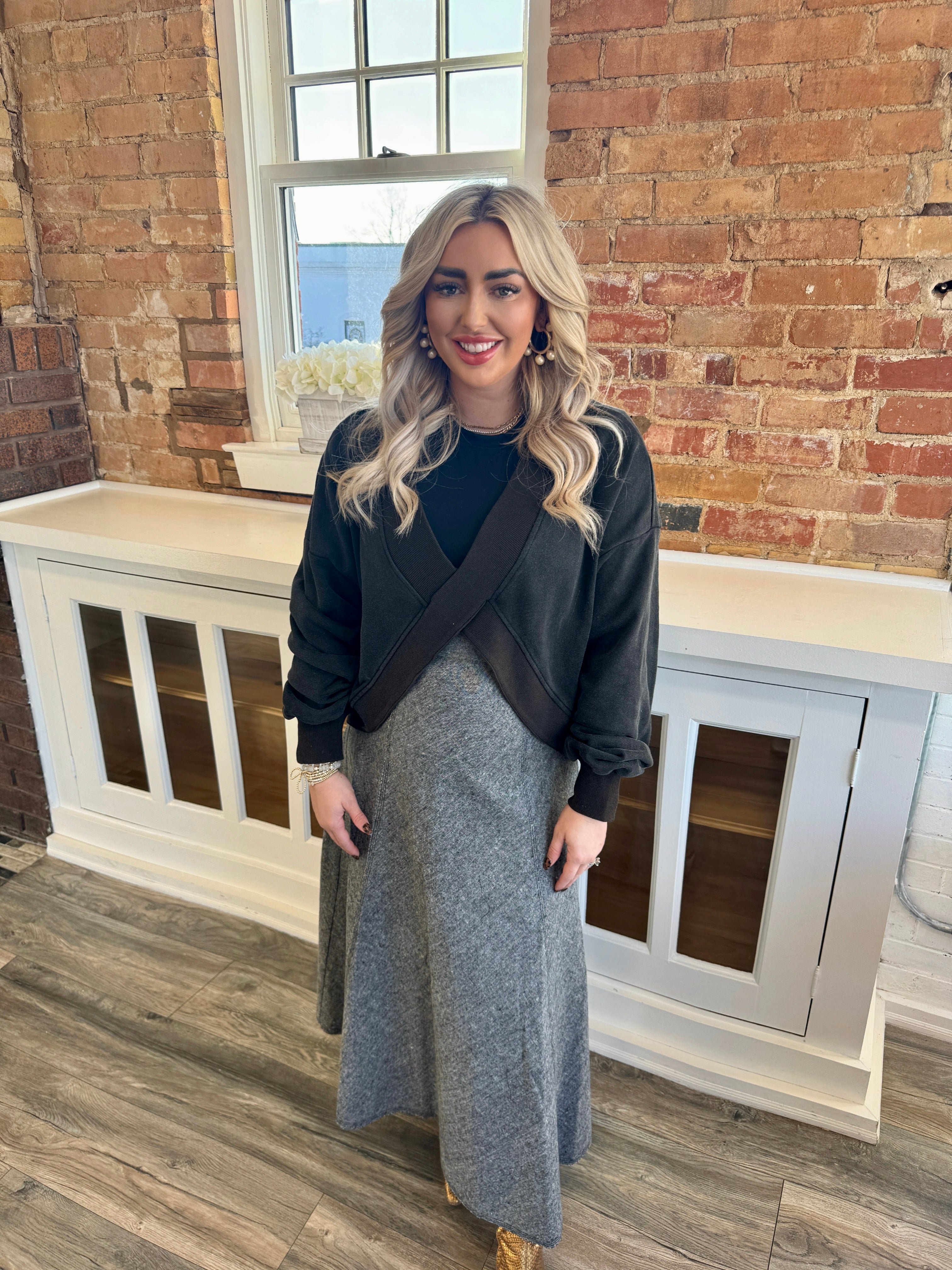 The Zoe Skirt is a must-have for any fashionista. Its unique two tone design adds visual interest to any outfit, while the a-line silhouette flares out for a flattering fit. The subtle grey color is versatile and can be dressed up or down. Perfect for any occasion.